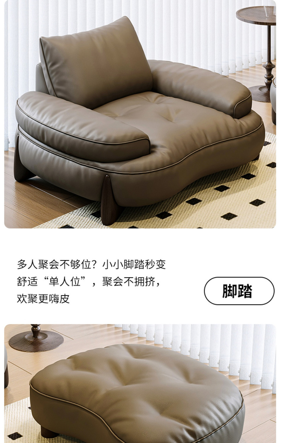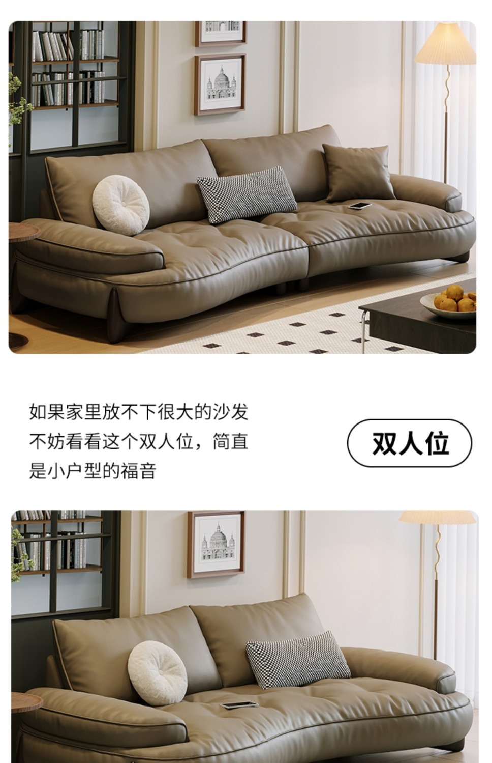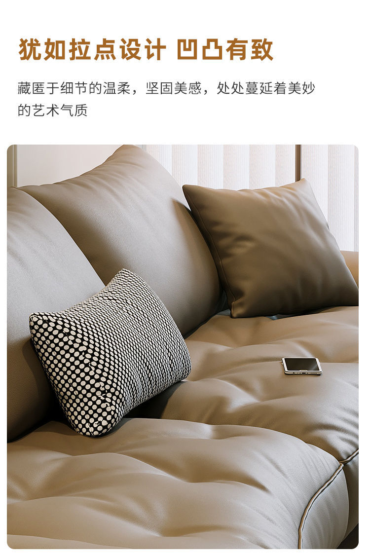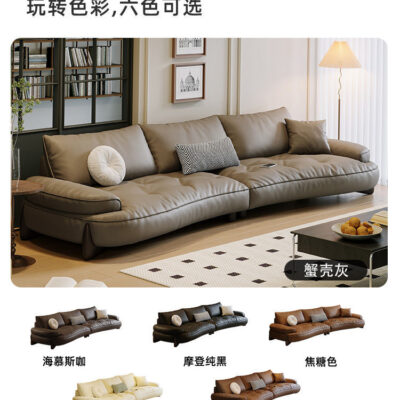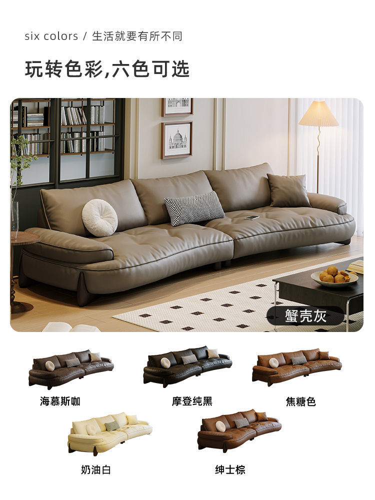 Phong cách Ý tối giản sofa phòng khách lớp đầu da bò cong đơn giản hiện đại ánh sáng nội thất sang trọng lưới da đỏ sofa nghệ thuật