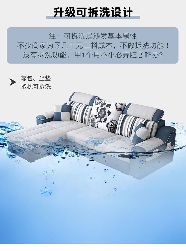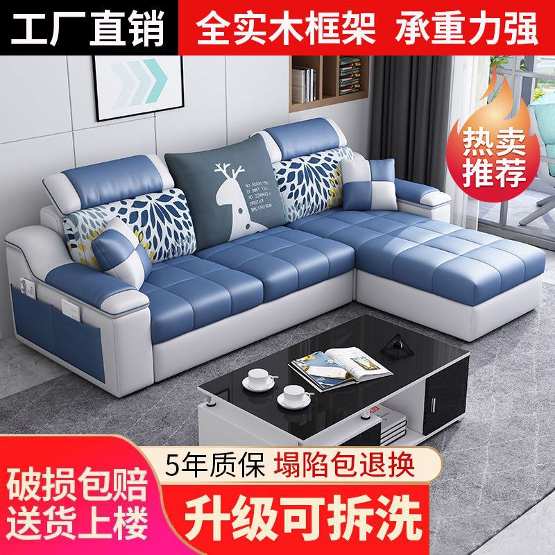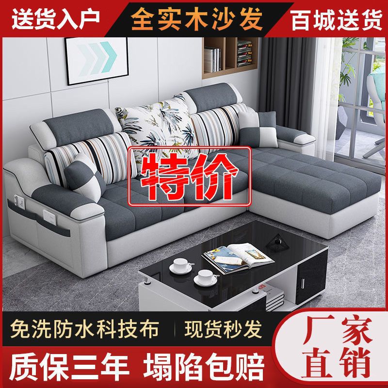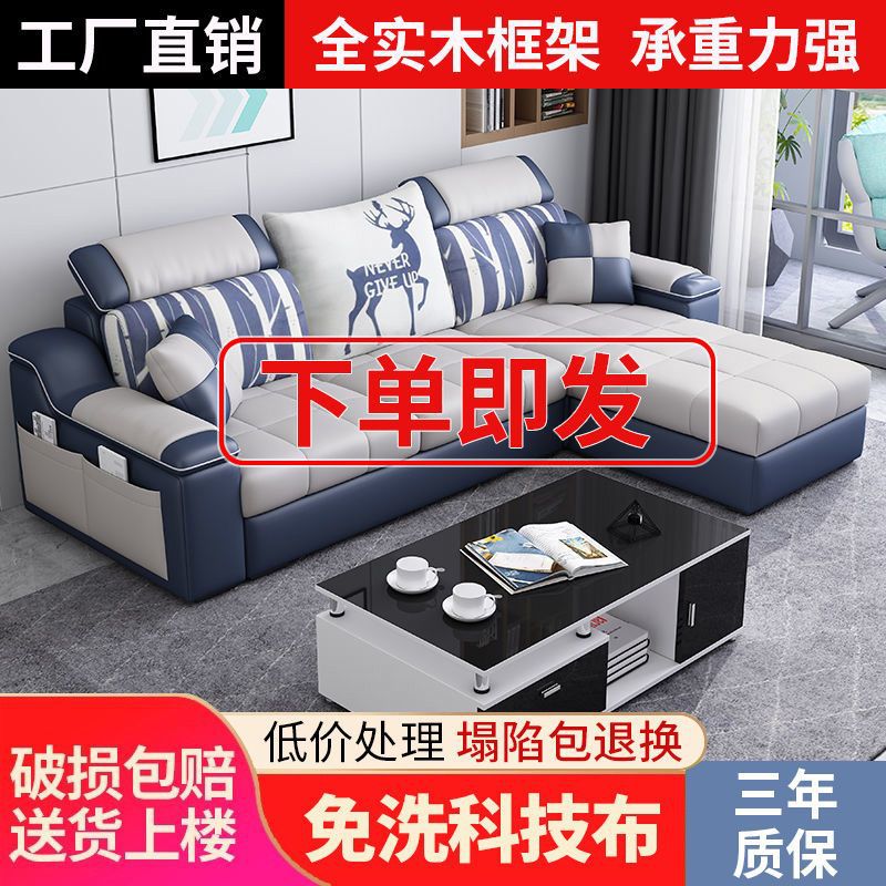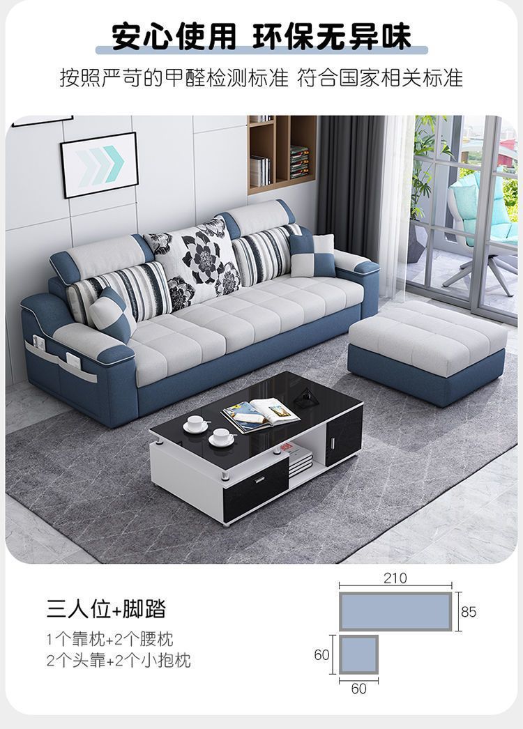 Phòng khách căn hộ nhỏ sofa vải hiện đại tối giản phòng cho thuê ghế sofa ba chỗ có thể tháo rời và giặt được toàn bộ nội thất lắp ráp