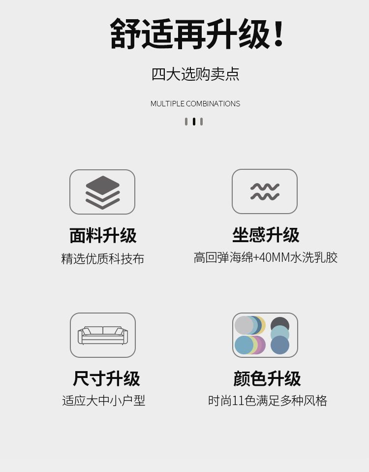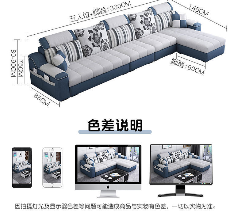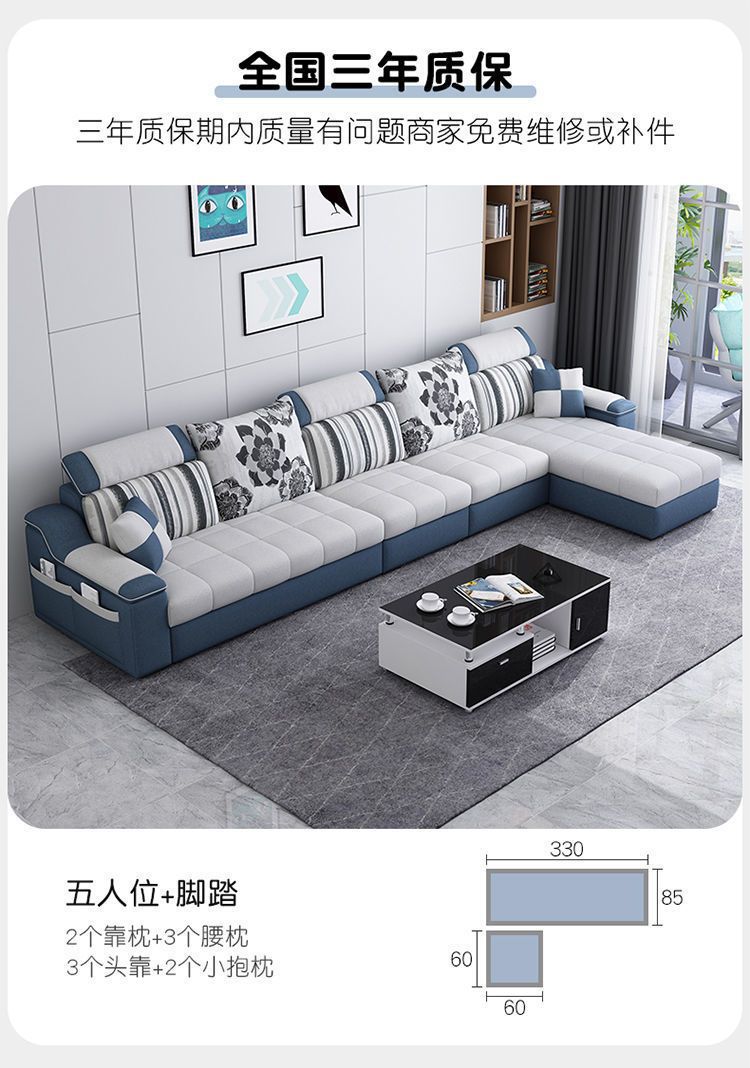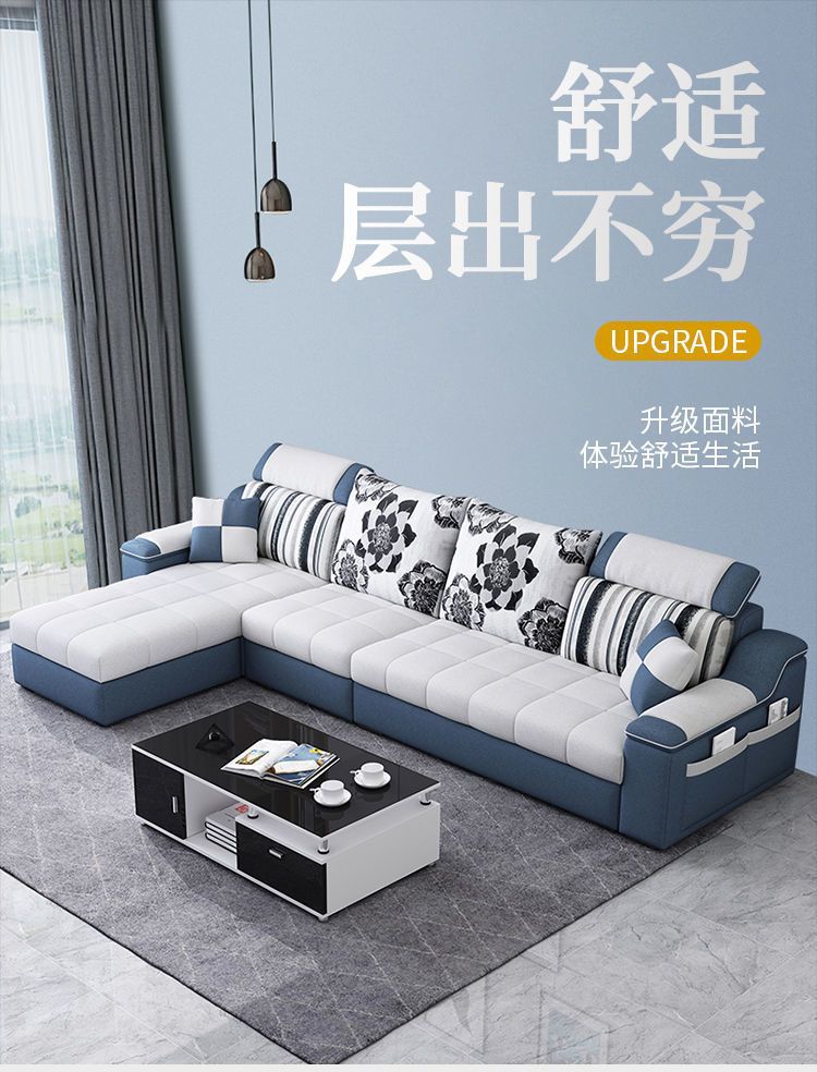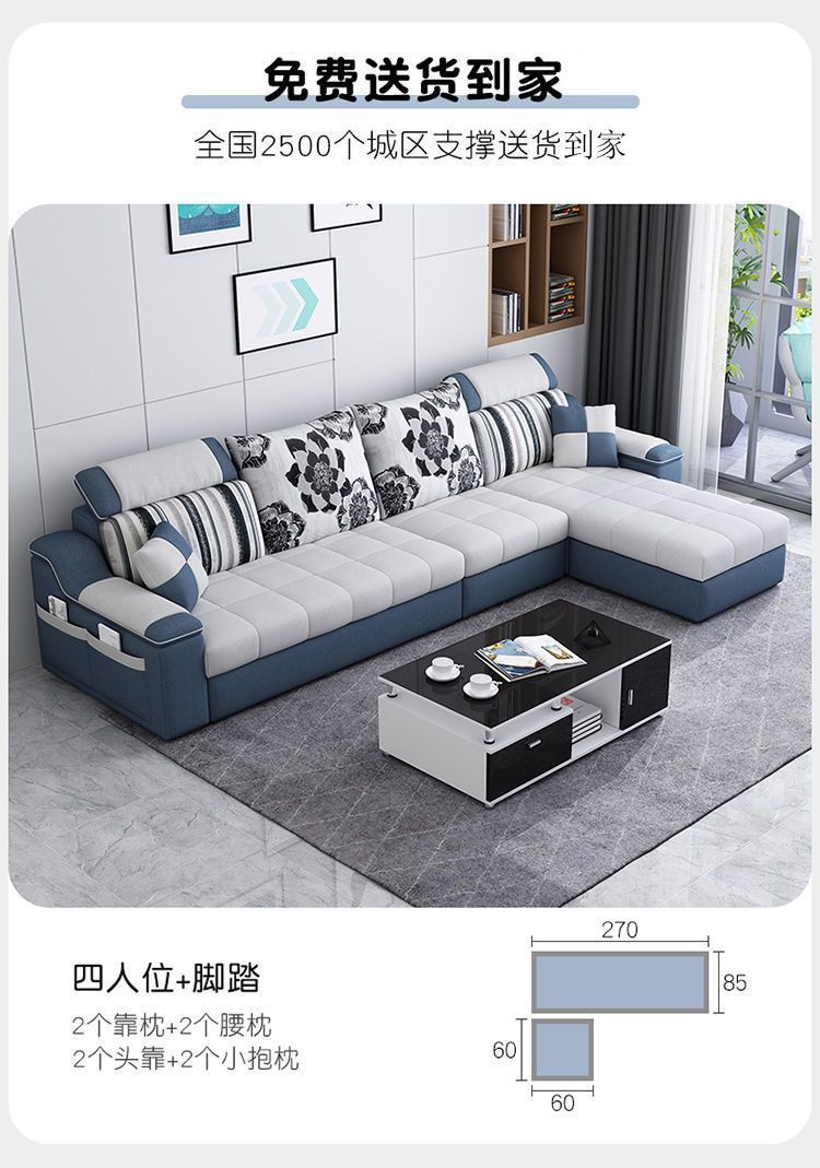 Phòng khách căn hộ nhỏ sofa vải hiện đại tối giản phòng cho thuê ghế sofa ba chỗ có thể tháo rời và giặt được toàn bộ nội thất lắp ráp
