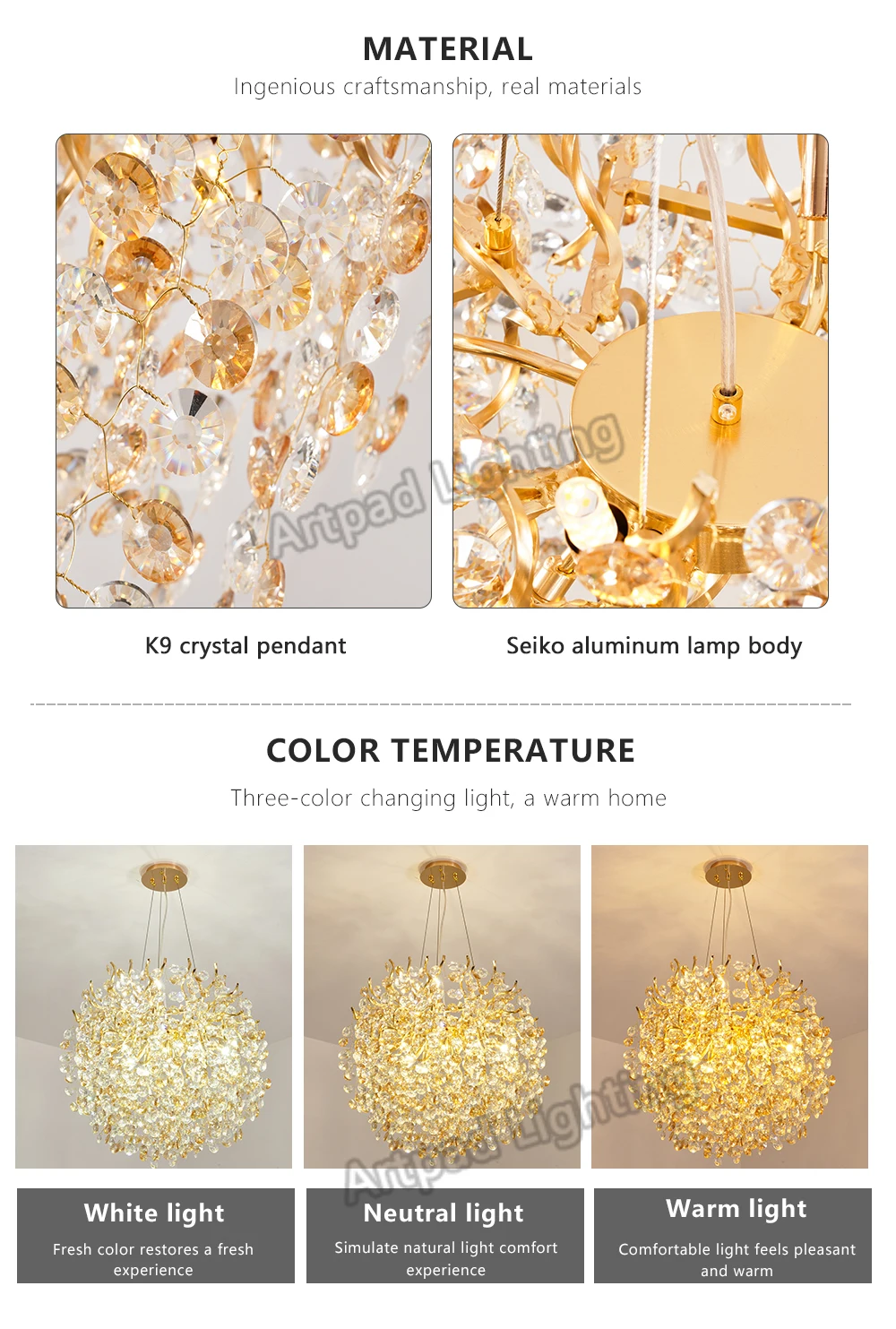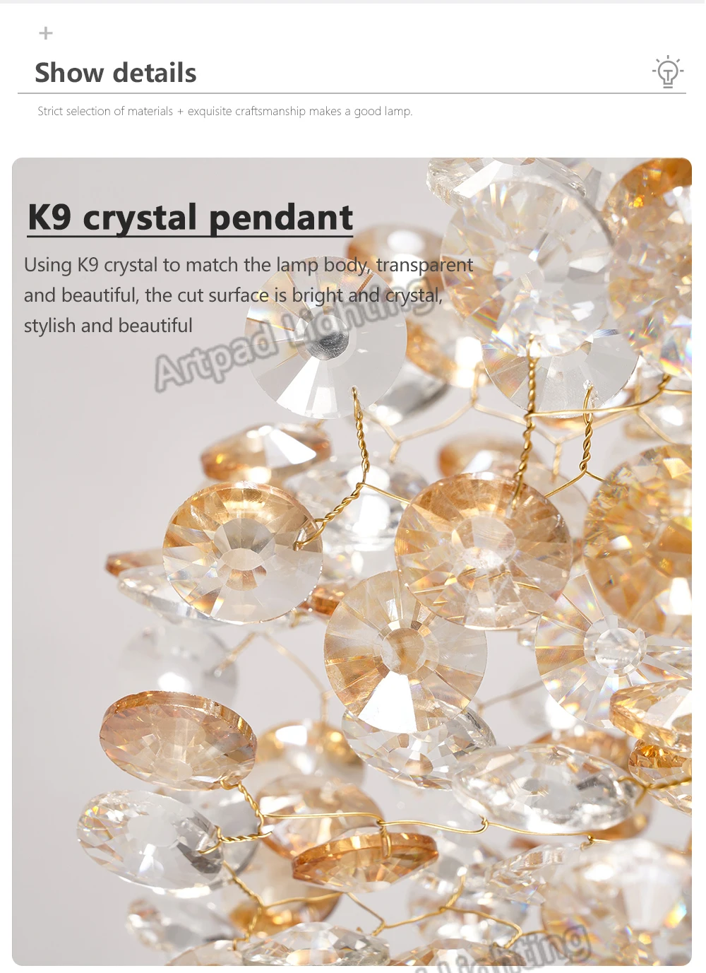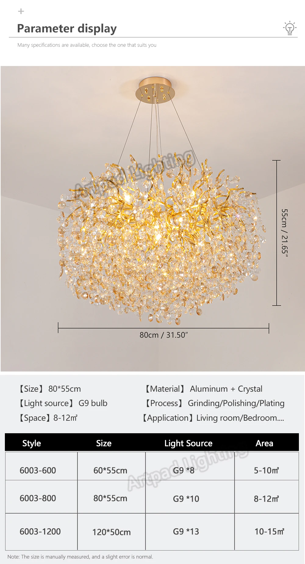 Phòng Khách Cao Cấp Đèn Chùm Pha Lê Ánh Sáng Tròn Hiện Đại K9 Pha Lê Nhánh Cây Đèn Chùm Cho Phòng Ngủ Phòng Ăn Trang Trí Nhà. Quý khách có nhu cầu mua Đèn chùm nhập khẩu vui lòng liên hệ với chúng tôi để được tư vấn hỗ trợ. Dịch vụ mua hàng Trung Quốc sẽ hỗ trợ quý khách mua hàng từ nhà cung cấp và giao tới tận tay quý khách hàng..Số mô hình:6003 Tính năng: Đèn chùm pha lê sang trọng Điện áp: 90-260V Nguồn điện: AC Loại lắp đặt: Gắn phẳng Loại bóng râm: CRYSTAL Hướng bóng: Xuống Có thể điều chỉnh độ sáng: Không Hoàn thiện: Đánh bóng Loại công tắc: Không Bảo hành: 3 năm Loại đế: G9 Phong cách: Phong cách hiện đại Nguồn sáng: Bóng đèn LED Chất liệu thân máy: Nhôm Chứng nhận: CCC Là bóng đèn Bao gồm: Có Tên thương hiệu: Artpad Xuất xứ: Trung Quốc đại lục Loại sản phẩm: Đèn chùm