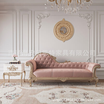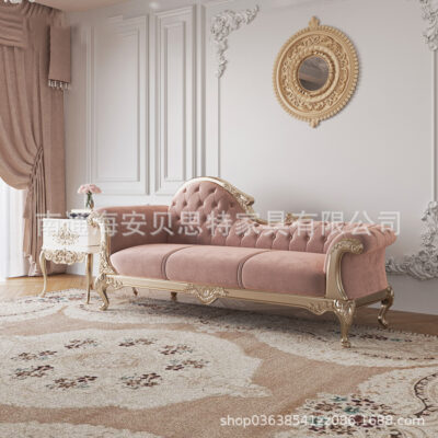 Phòng khách chạm khắc theo phong cách Pháp Ghế trường kỷ bằng gỗ nguyên khối Phong cách châu Âu ánh sáng sang trọng hiện đại tối giản phòng nhỏ sofa vải sofa tòa án