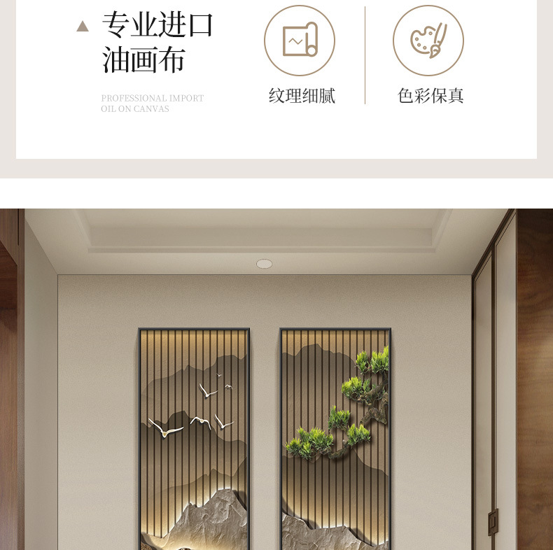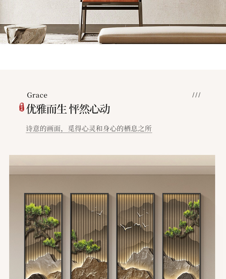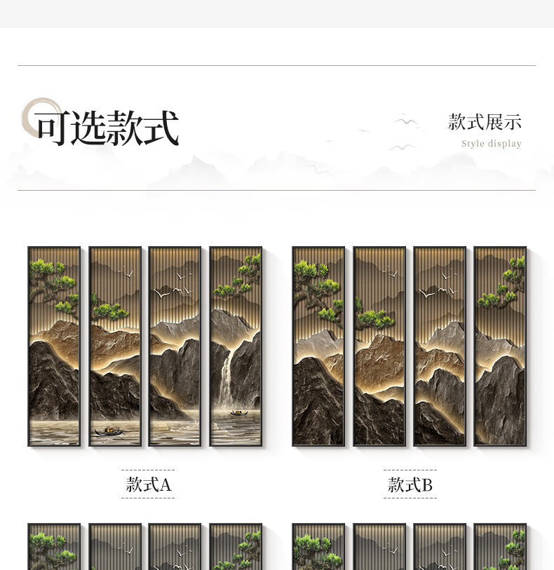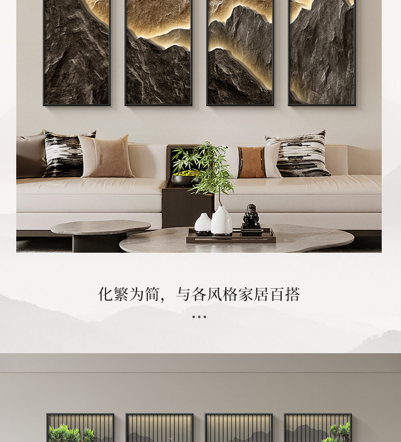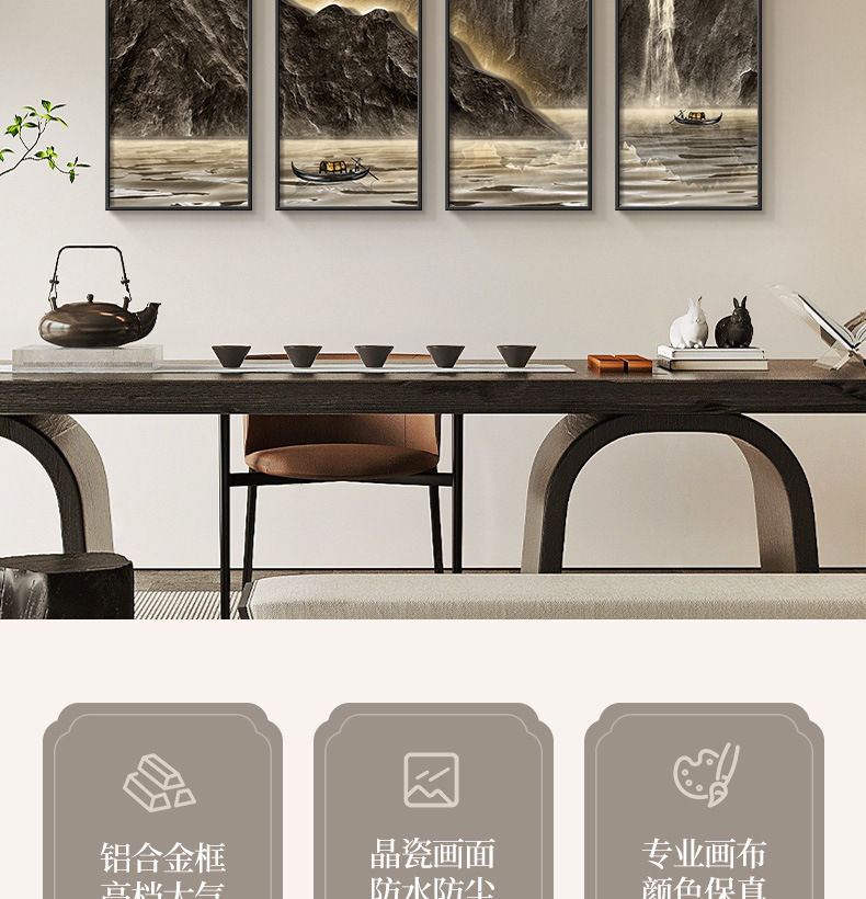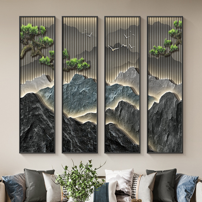 Phòng khách kiểu Trung Quốc mới treo bức tranh nước chảy giàu có sofa nền trang trí tường bức tranh phong cảnh bốn bức tranh tường phòng trà