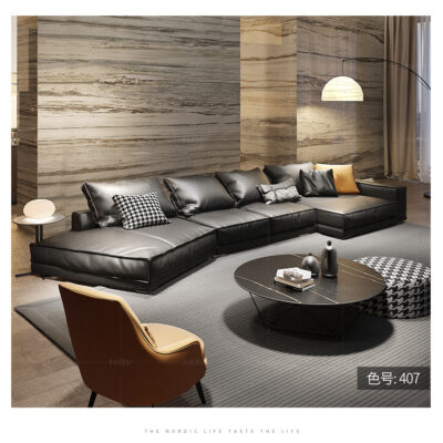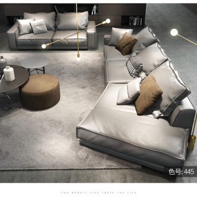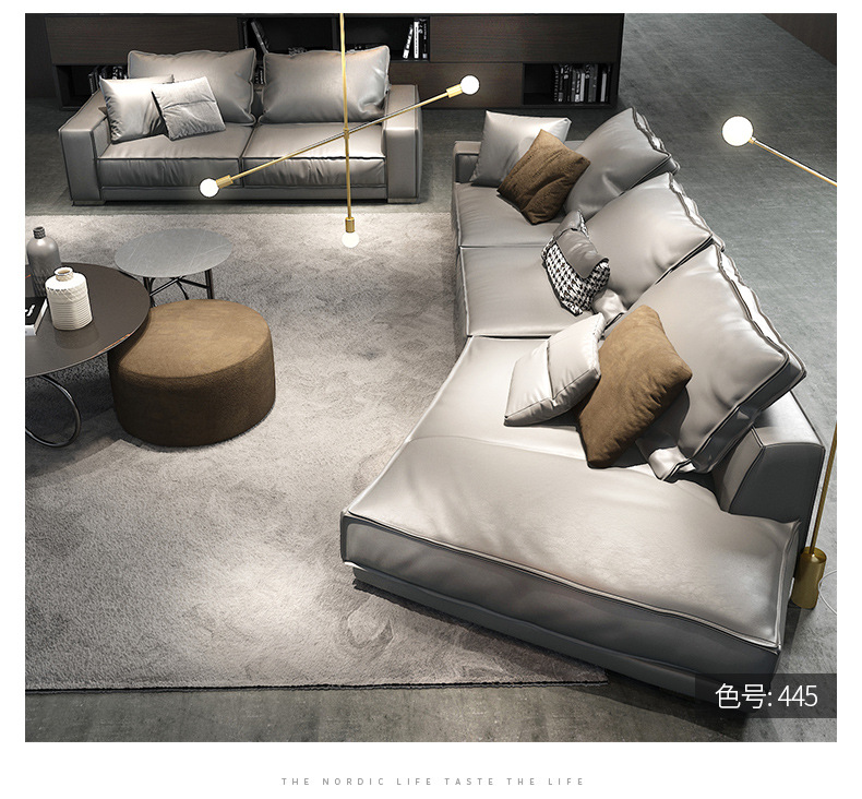 Phòng khách Phật Sơn kiểu Ý Budapest vải mờ Ghế sofa hình đặc biệt Ghế sofa da bò lớp trên quy mô lớn