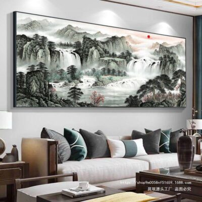 Phòng khách phong cách Trung Quốc phong cảnh văn phòng ủng hộ núi hình ảnh và nhân vật treo tranh nền sofa trang trí tường phong cảnh hội họa Trung Quốc tranh tường hội trường trung tâm