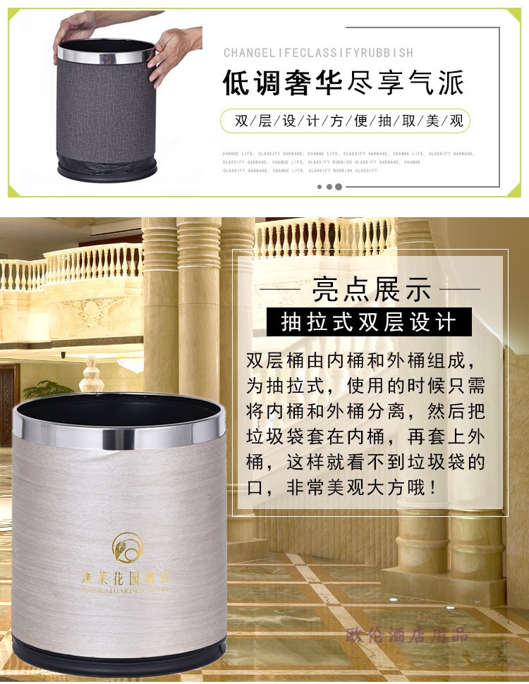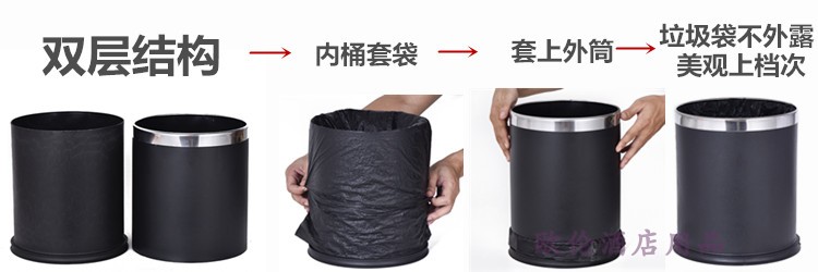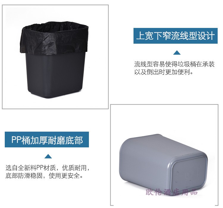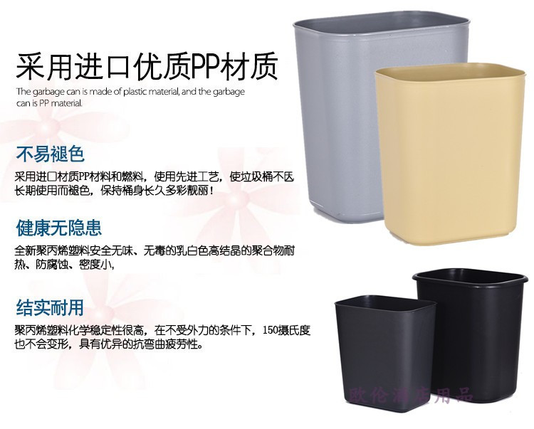 Phòng khách sạn thùng rác hai lớp hình vuông thùng rác khách sạn nhỏ không nắp đậy nhà vệ sinh nhựa 8L chống cháy