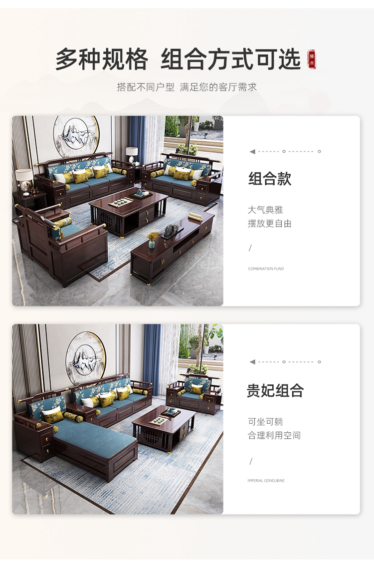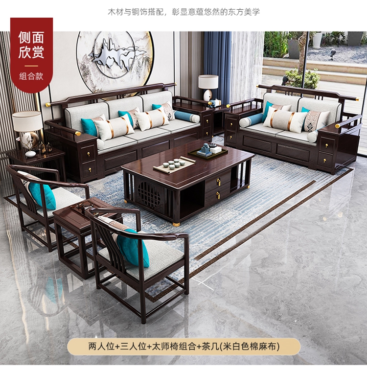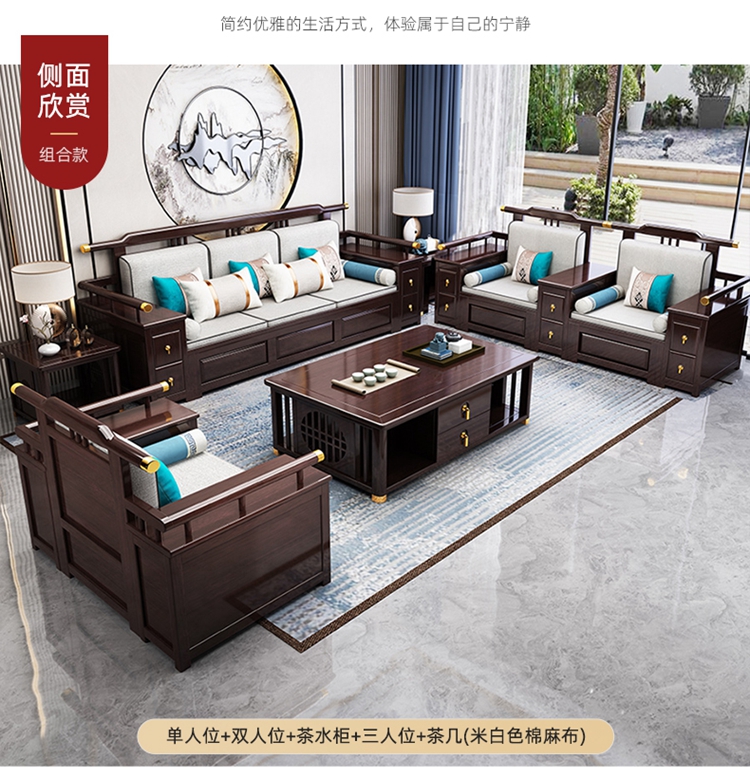Phòng khách sofa gỗ sồi kiểu Trung Quốc mới tất cả đều bằng gỗ nguyên khối cỡ biệt thự lưu trữ căn hộ mùa đông và mùa hè đồ nội thất bằng gỗ hai công dụng