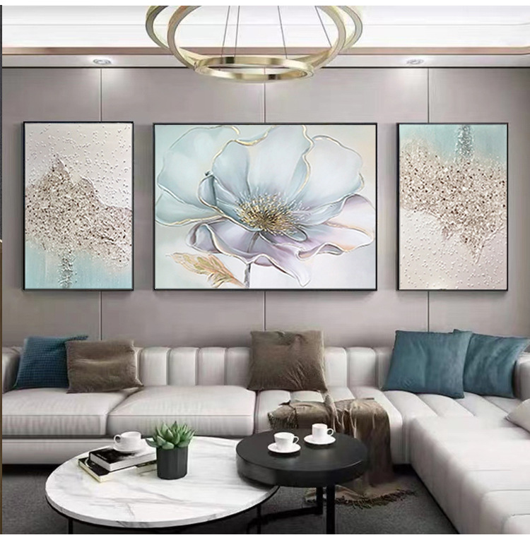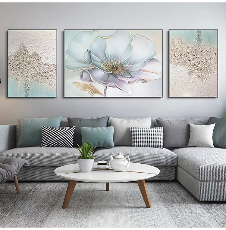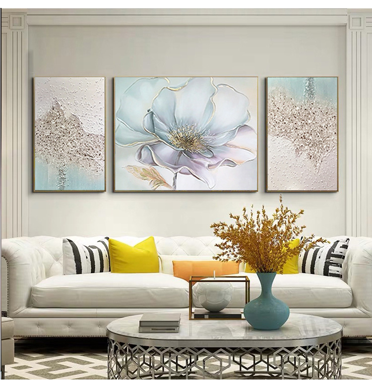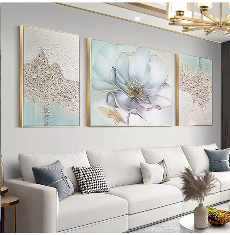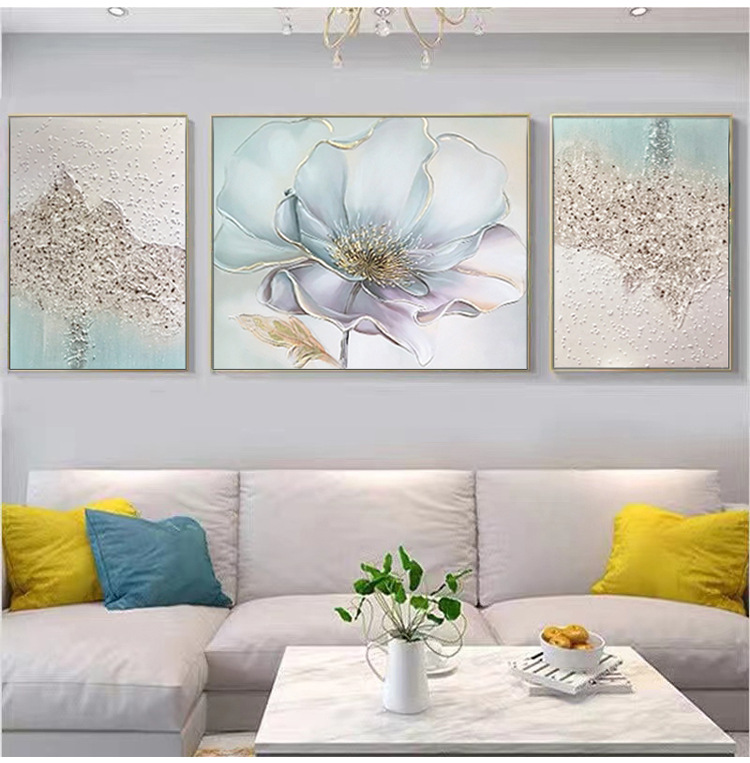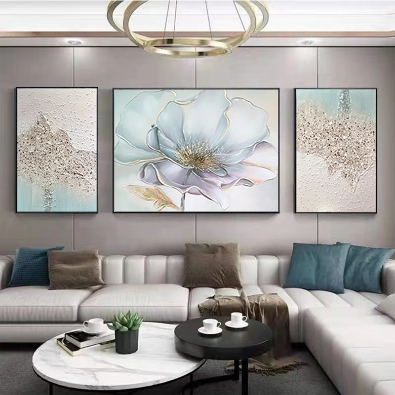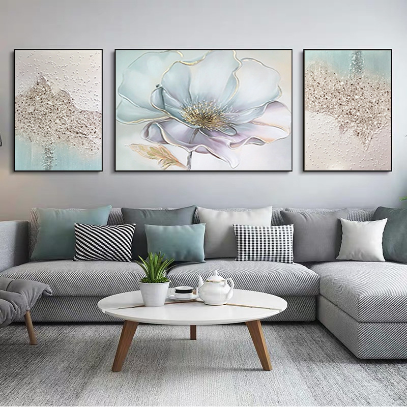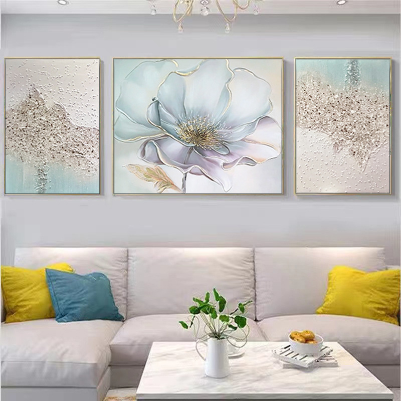 Phòng khách sofa nền tường bộ ba khí quyển vẽ tay trừu tượng tranh sơn dầu nhà hàng bức tranh tường đầu giường hoa ánh sáng sang trọng tranh treo