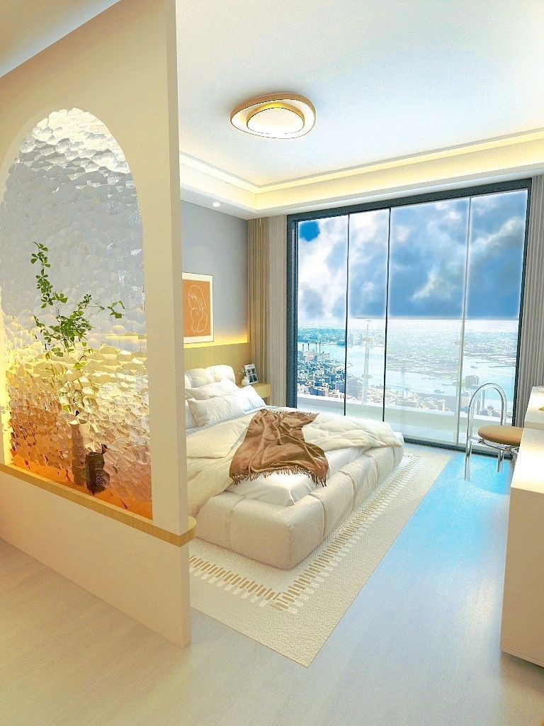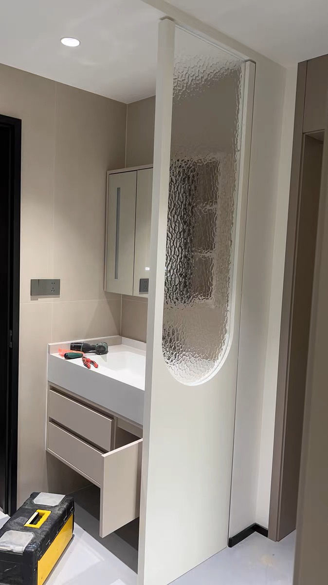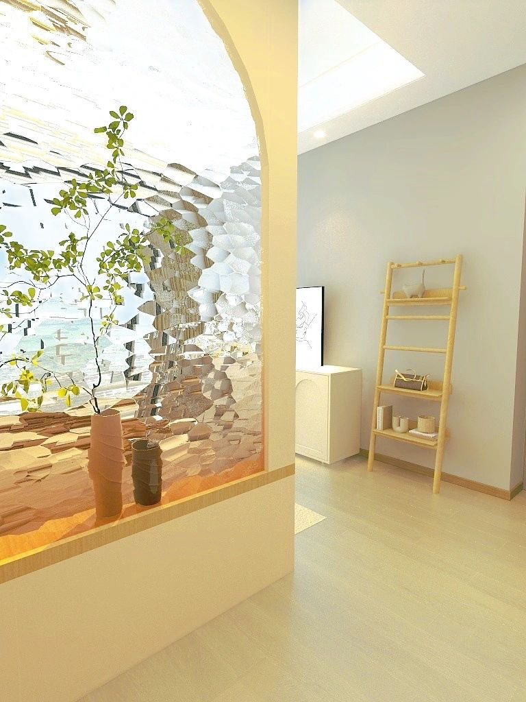 Phòng khách tối giản hiện đại lối vào hiên vách ngăn Xiaohongshu lưới nghệ thuật màu đỏ Changhong thủy tinh chắc chắn màn hình gỗ