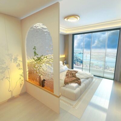 Phòng khách tối giản hiện đại lối vào hiên vách ngăn Xiaohongshu lưới nghệ thuật màu đỏ Changhong thủy tinh chắc chắn màn hình gỗ