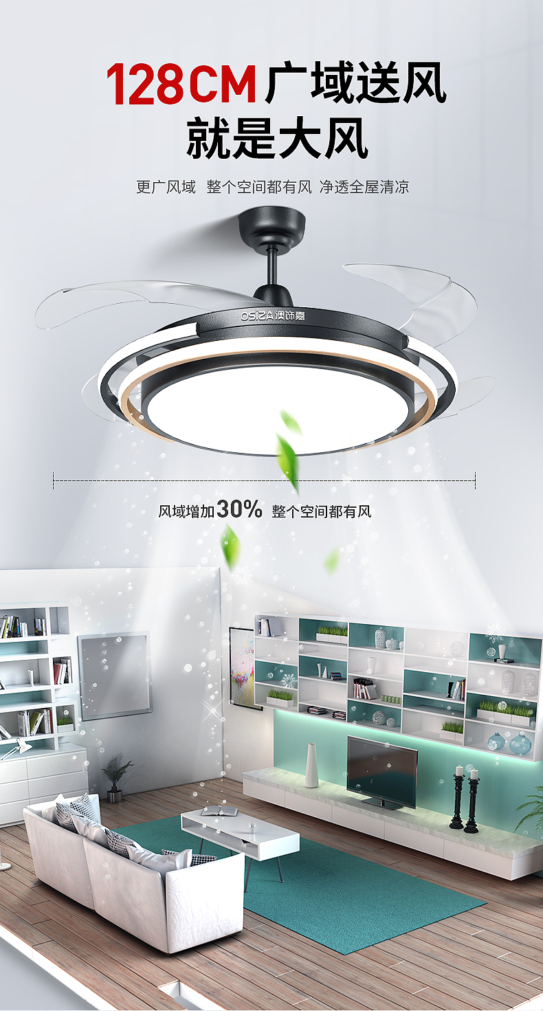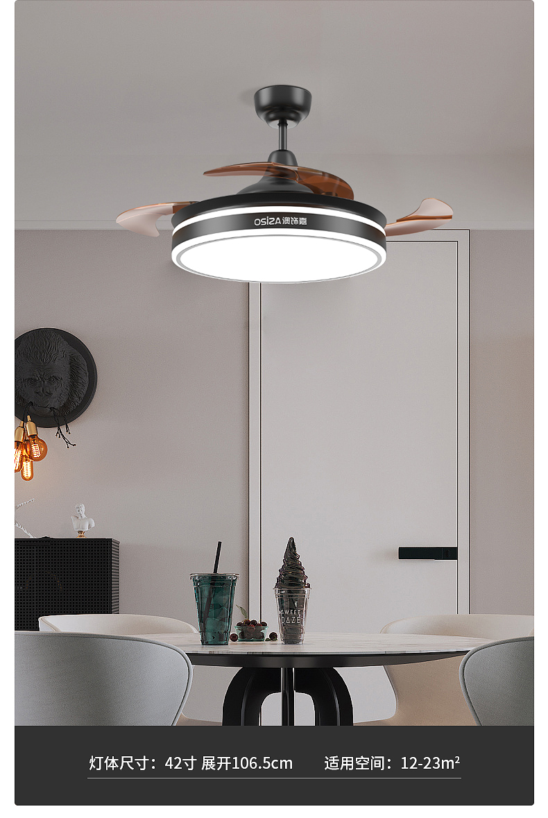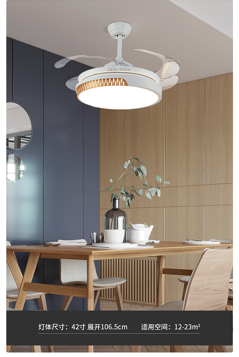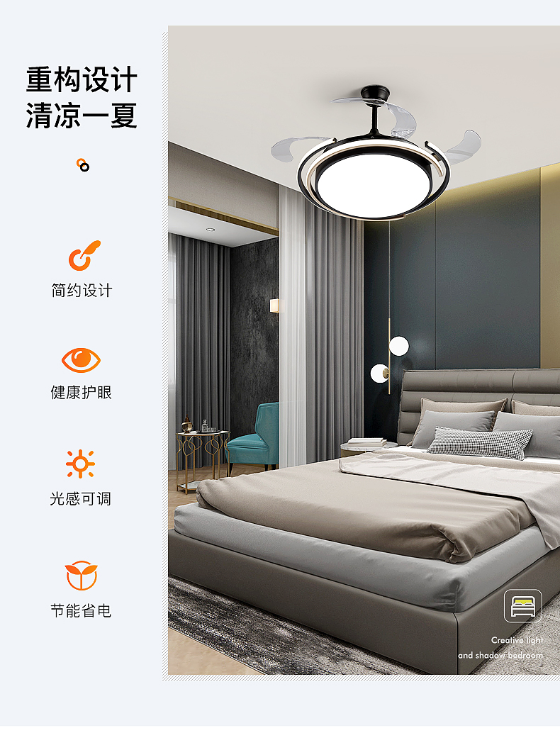 Phòng khách vô hình quạt đèn hiện đại tối giản phòng ăn nhà hàng tích hợp nhà khí quyển quạt trần đèn 2023 mới