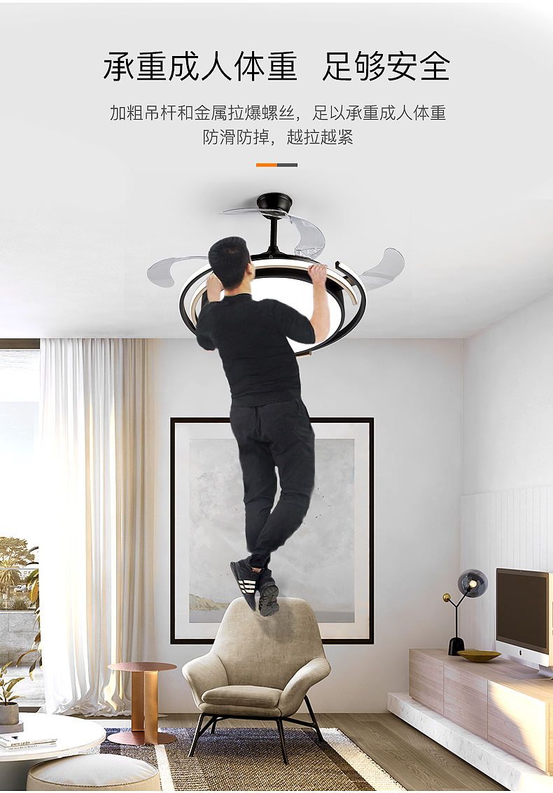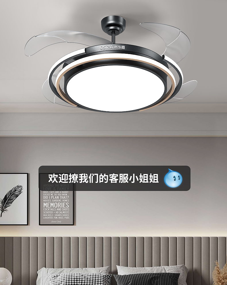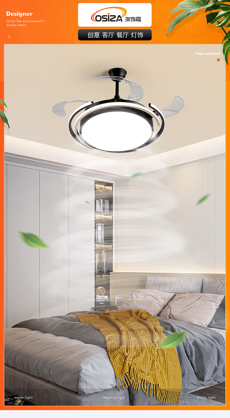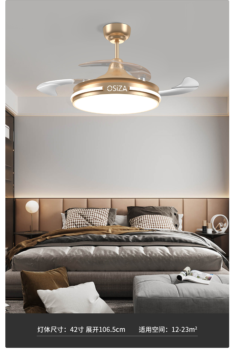 Phòng khách vô hình quạt đèn hiện đại tối giản phòng ăn nhà hàng tích hợp nhà khí quyển quạt trần đèn 2023 mới