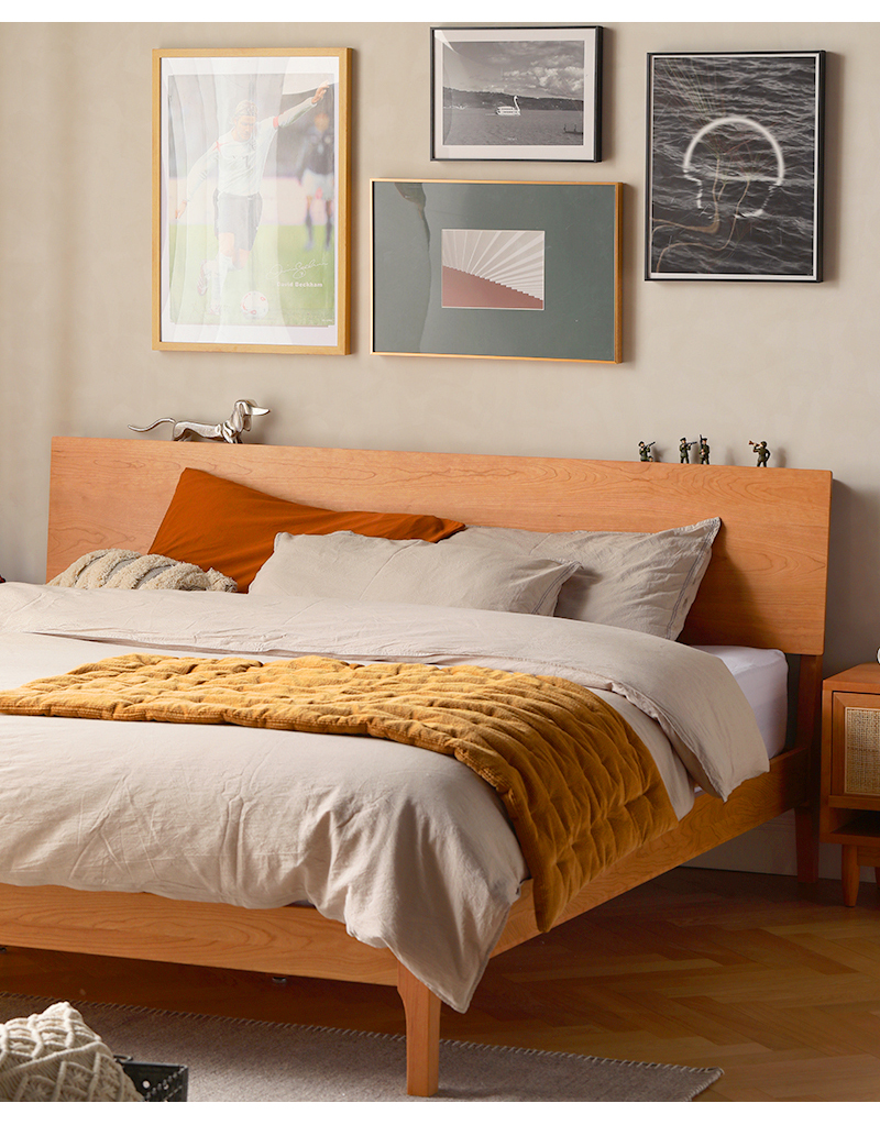 Phòng ngủ bằng gỗ anh đào Bắc Âu Giường ngủ bằng gỗ chắc chắn kiểu Nhật Bản căn hộ nhỏ theo phong cách cổ điển đồ nội thất đơn giản 1,5 mét đơn đôi 1,8