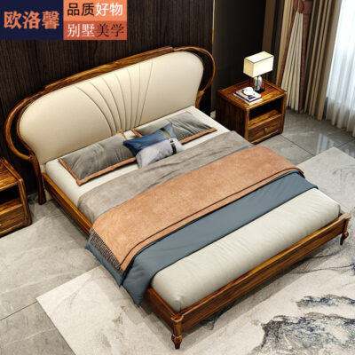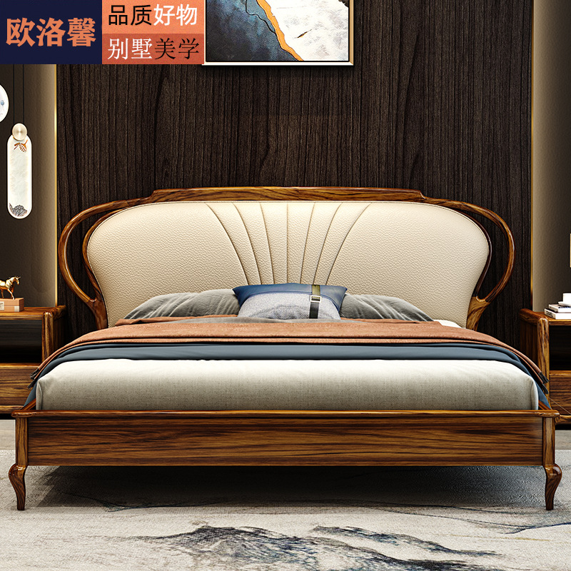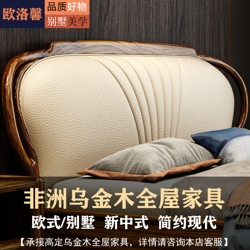 Phòng ngủ chính tối giản hiện đại mới cưới phong cách Trung Quốc nhẹ nhàng thiết kế sang trọng Gỗ mun Châu Phi giường đôi bằng gỗ nguyên khối bọc da