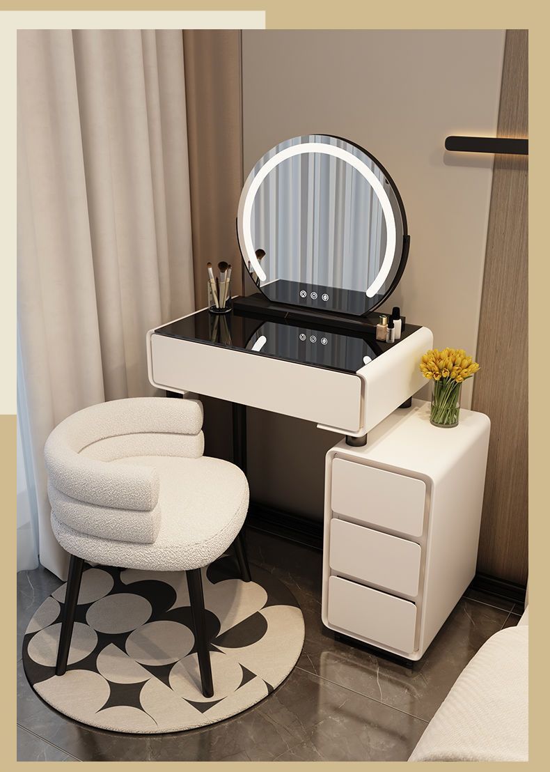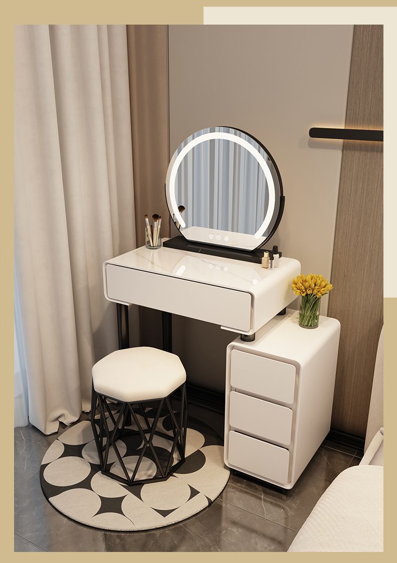 Phòng ngủ chung cư nhỏ bàn trang điểm gỗ nguyên khối kem gió sản phẩm mới bàn trang điểm giá rẻ nay về bàn trang điểm tủ kho