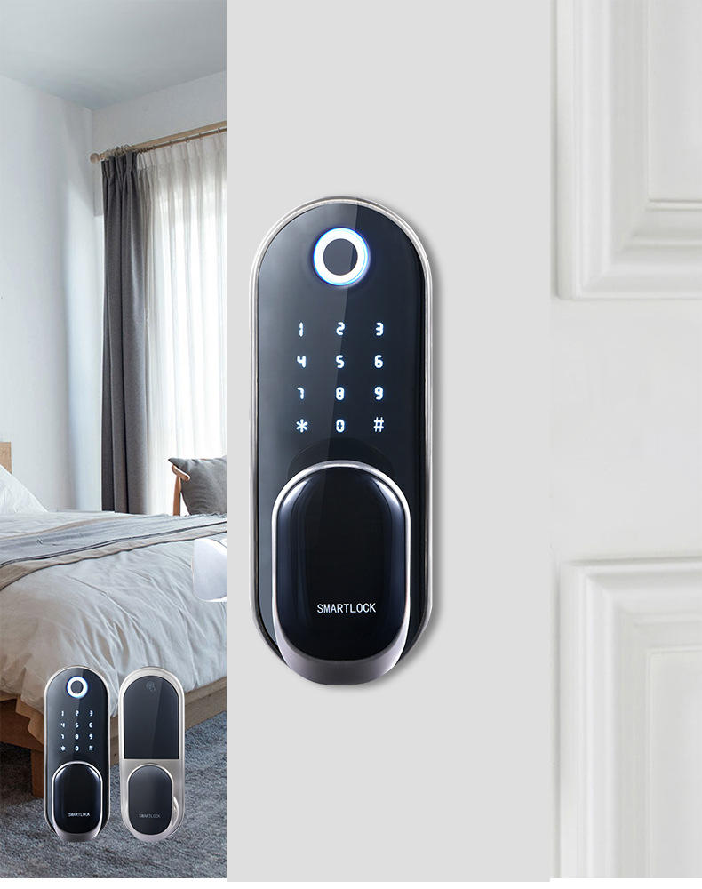 Phòng ngủ cửa gỗ khóa vân tay căn hộ khách sạn văn phòng nhà cửa phòng điều khiển từ xa điện thoại di động quẹt thẻ mật khẩu