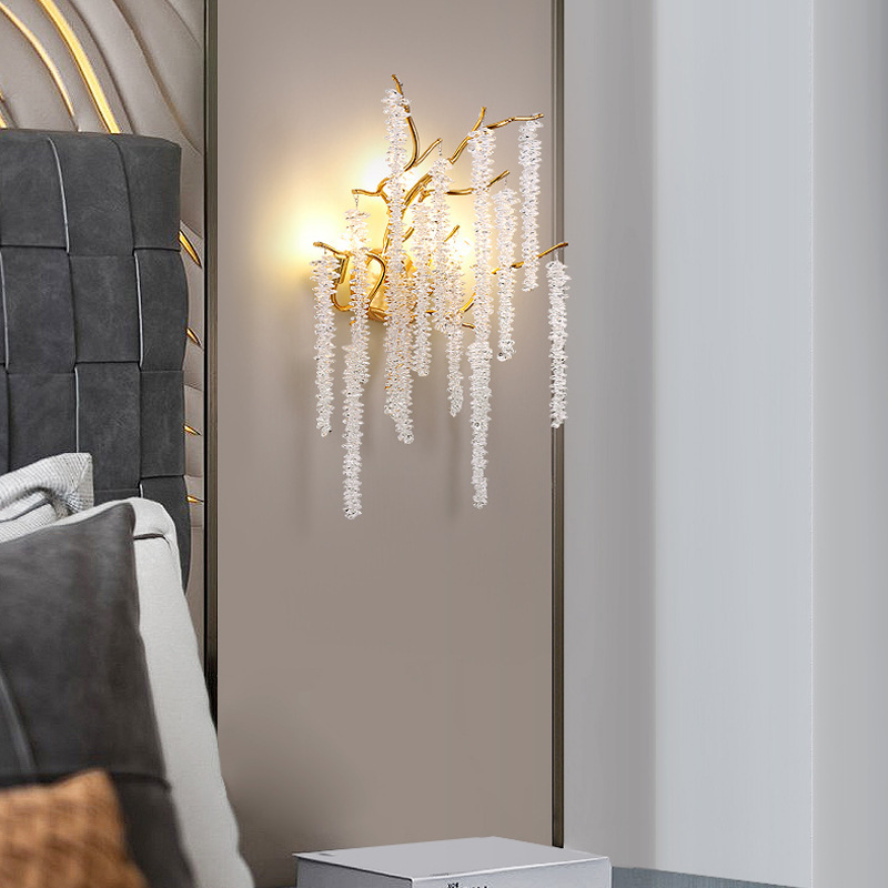Phòng ngủ đèn cạnh giường ngủ đèn tường hậu hiện đại ánh sáng sang trọng sáng tạo nhánh pha lê phòng ngủ chính phòng khách nền đèn tường đèn trang trí