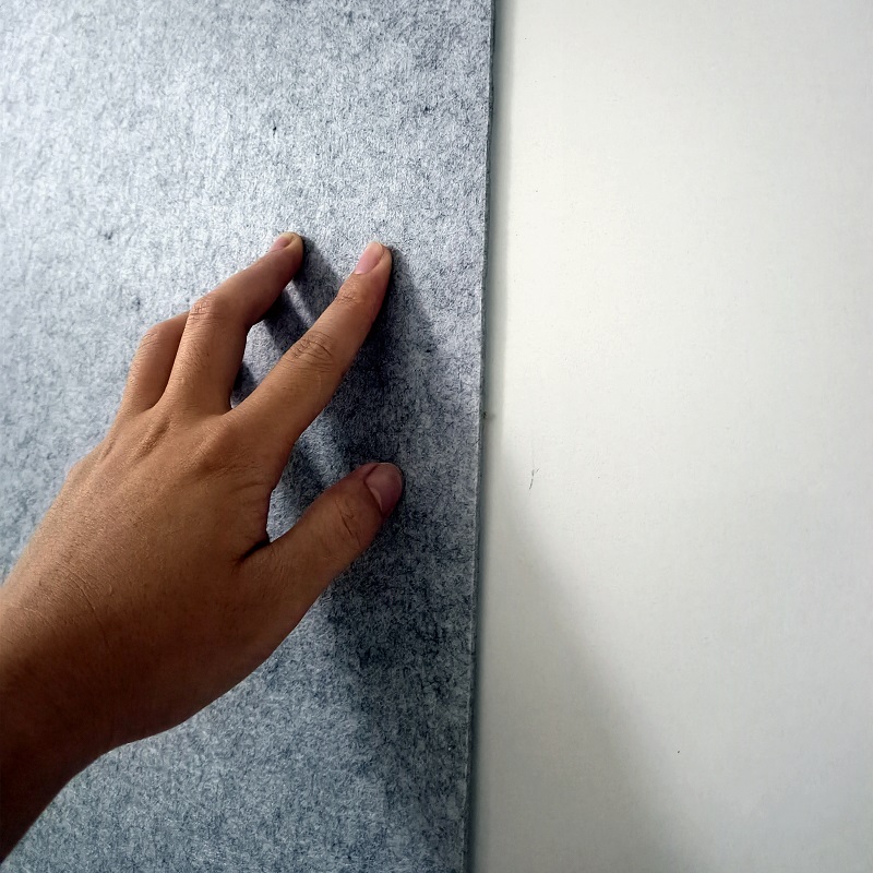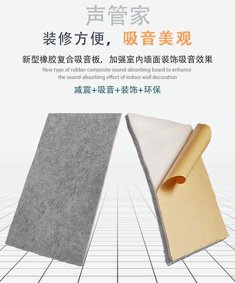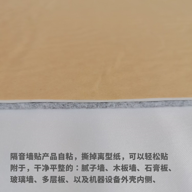 隔音墙贴采用白色环保丁基胶(隔音减震)+0.2mm铝箔+3mm吸音毡(装饰吸音)复合而成,即有隔音效果,也有吸音效果,单面带胶,撕开即可安装,方便无须请工人。