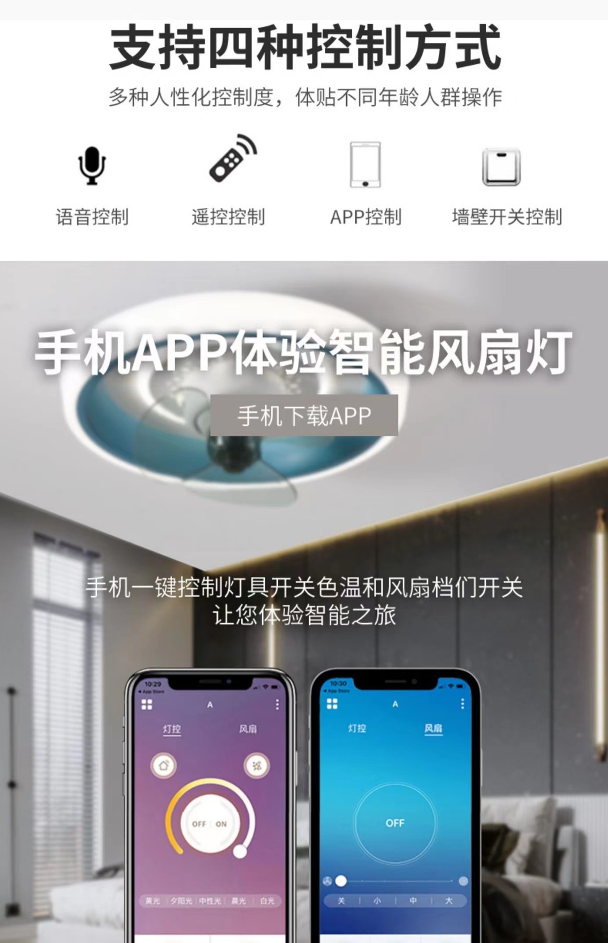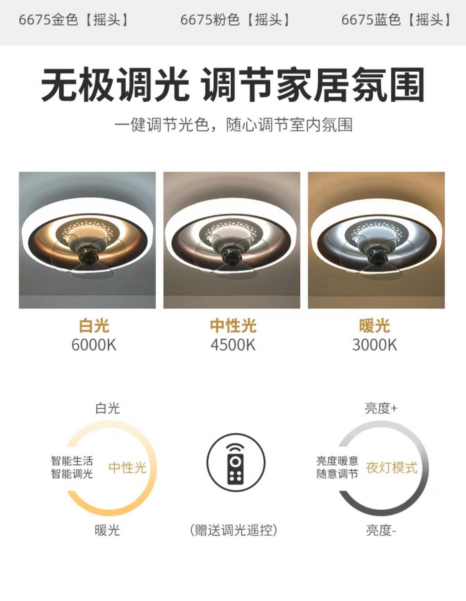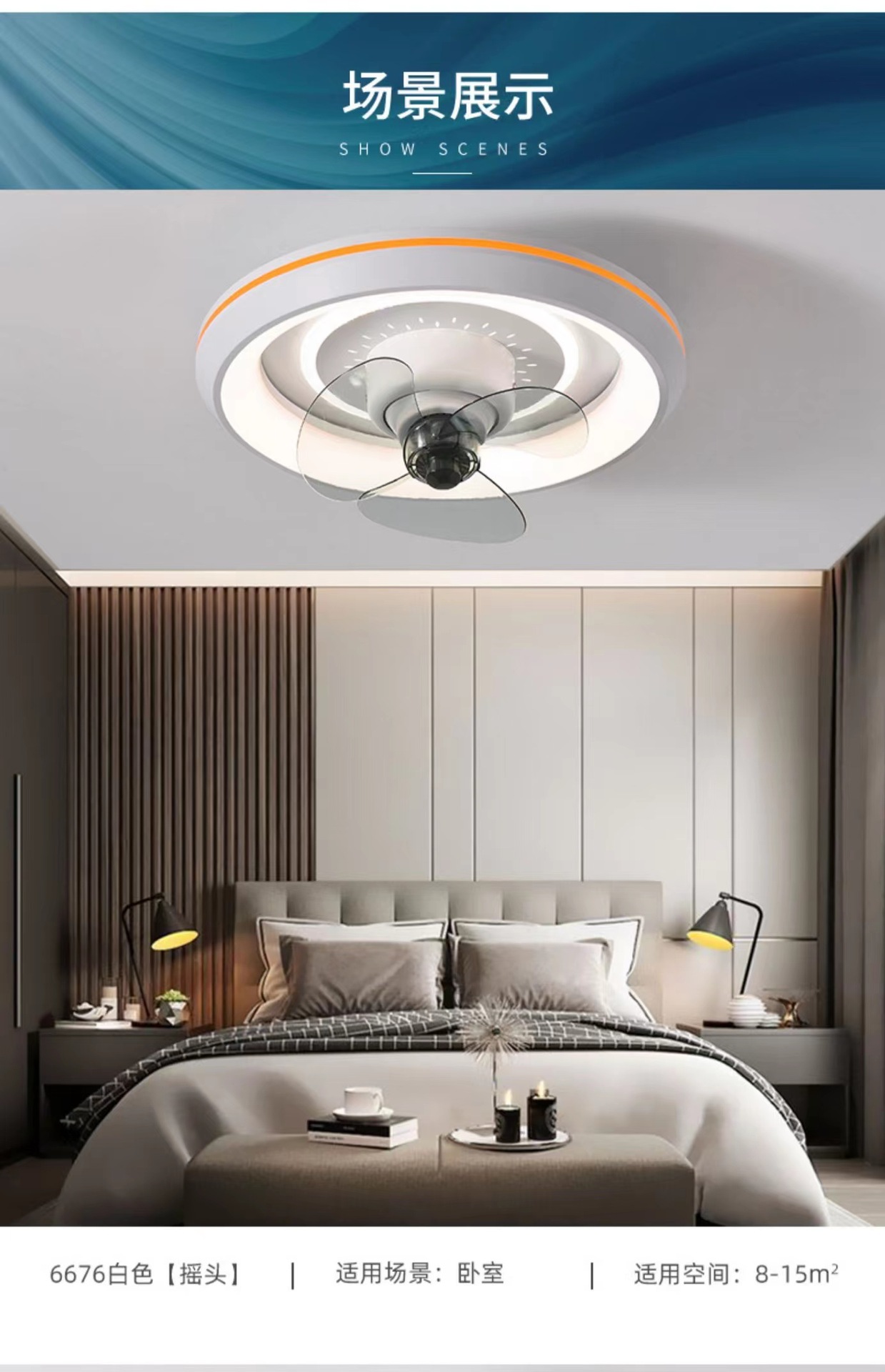 Phòng Ngủ Thông Minh Tắt Tiếng Quạt 2023 Mới 360° Lắc Đầu Phòng Ngủ Tích Hợp Quạt Phòng Đèn Ốp Trần