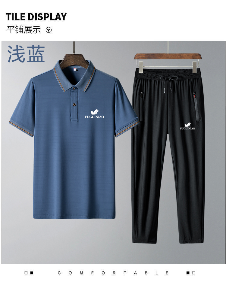 Phong phú chim bộ đồ thể thao nam giới trung niên và cao tuổi mùa hè băng lụa nhanh khô ve áo ngắn tay áo thun bố mùa hè