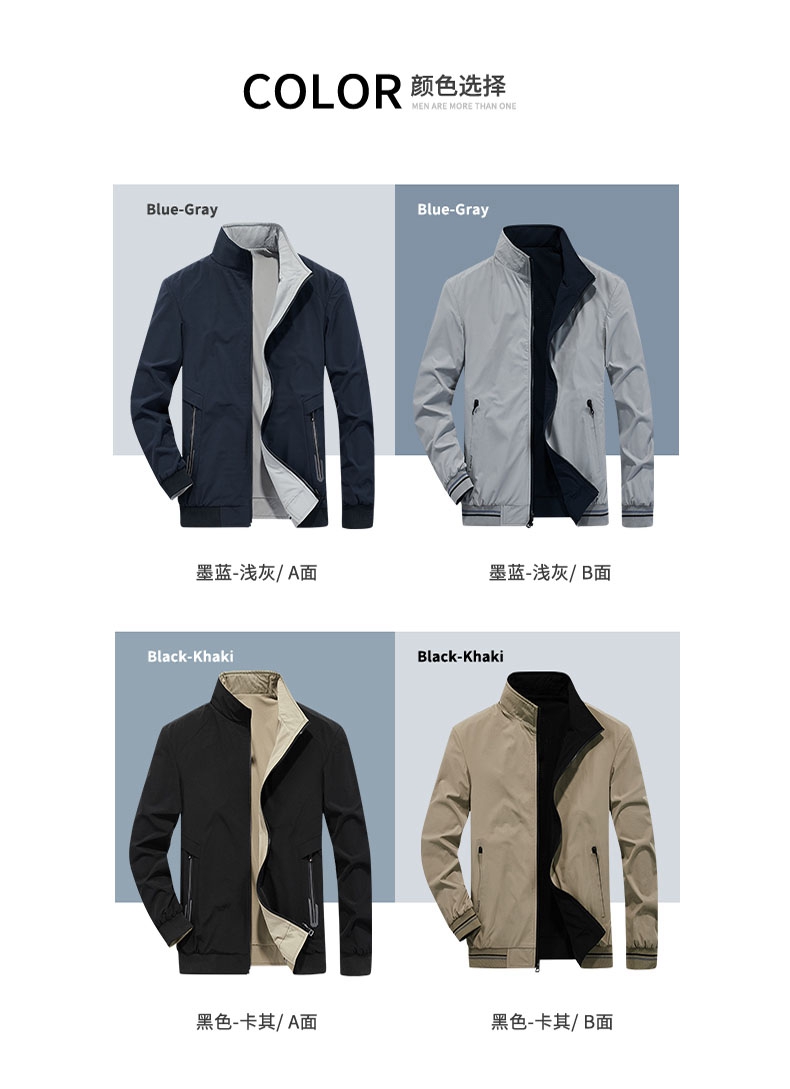 Phong phú mùa hè áo khoác mùa hè của nam giới áo khoác trung niên hai mặt kinh doanh bình thường cổ đứng áo gió áo khoác thể thao quần áo nam giới trẻ