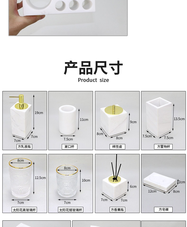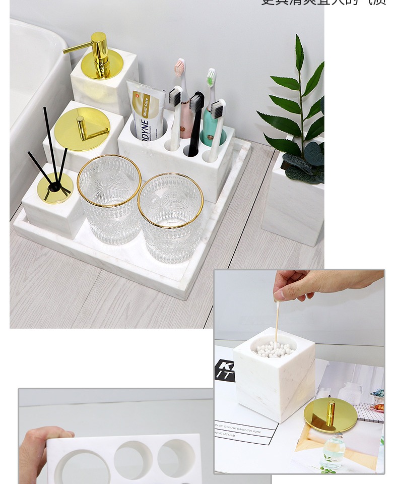 Phòng tắm bằng đá cẩm thạch 5 món rửa bộ chậu rửa phòng tắm cung cấp khay nha khoa ánh sáng đồ trang trí phong cách Bắc Âu sang trọng