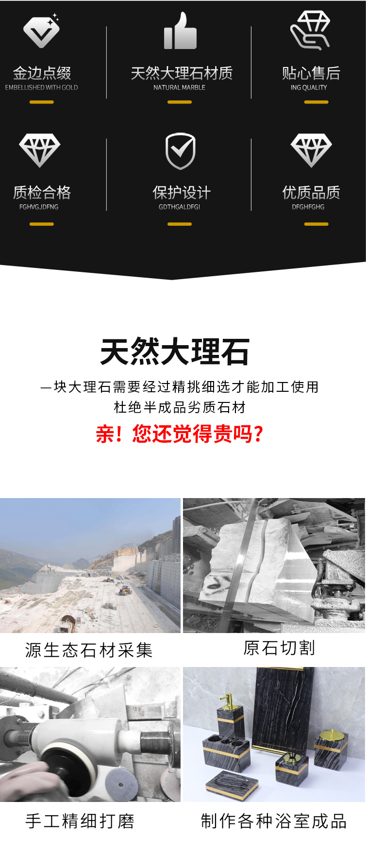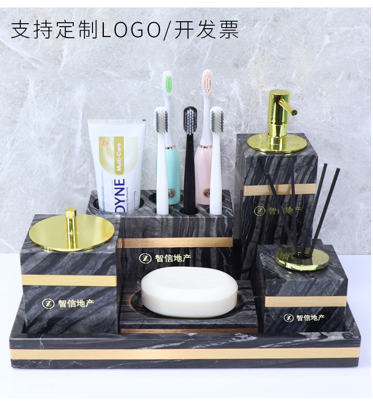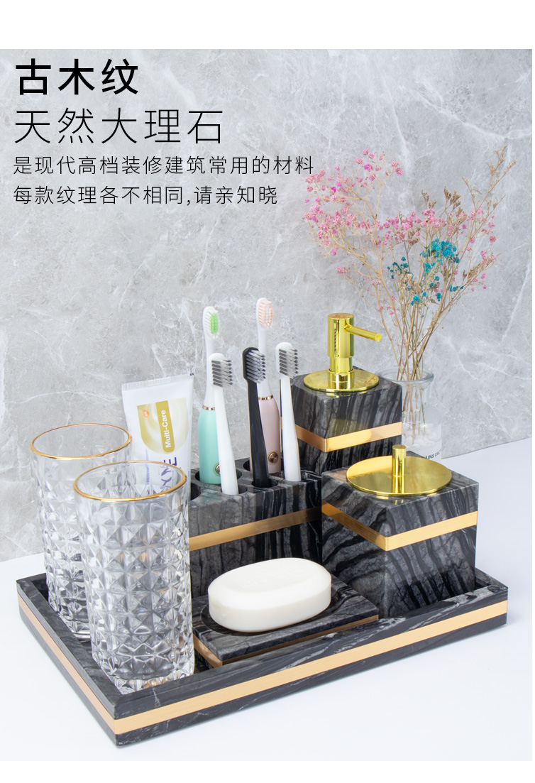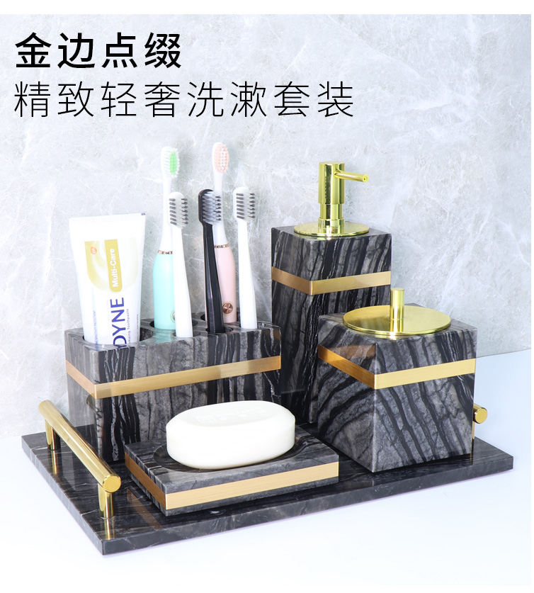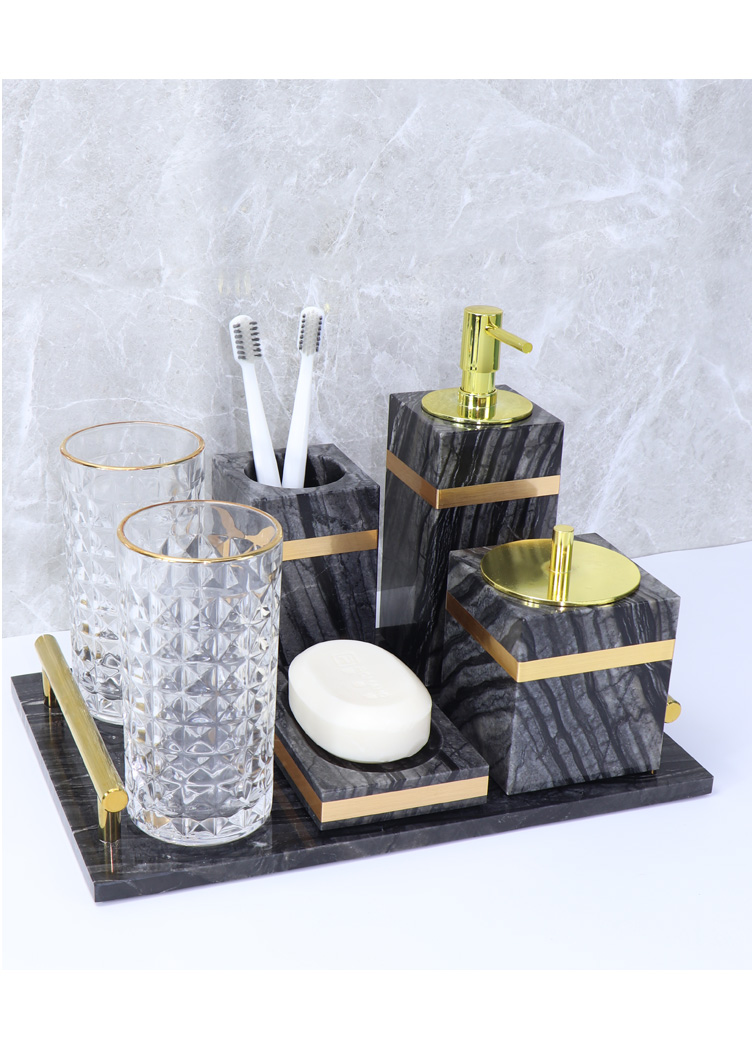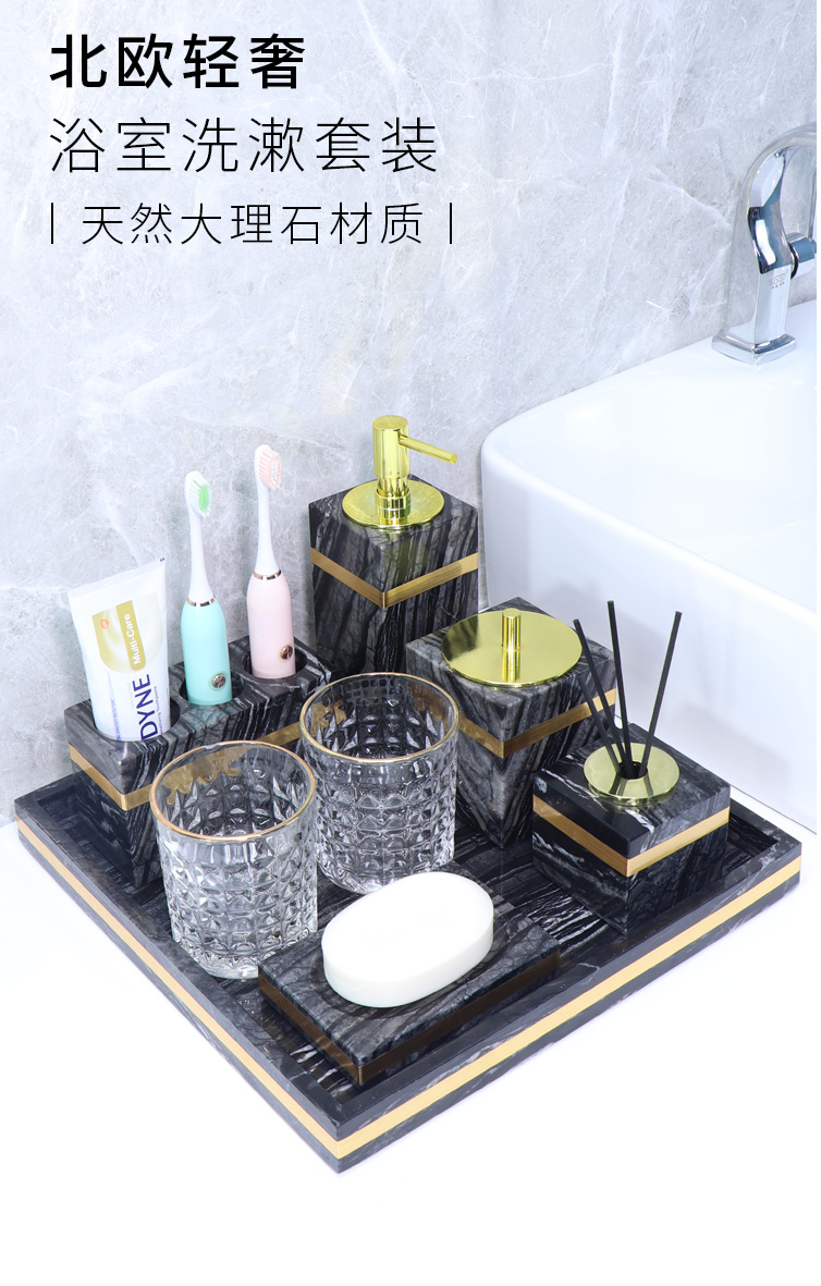Phòng tắm bằng đá cẩm thạch tự nhiên vật dụng phòng tắm rửa bộ ánh sáng phòng tắm sang trọng bộ giữ bàn chải đánh răng khay đựng cốc nước súc miệng