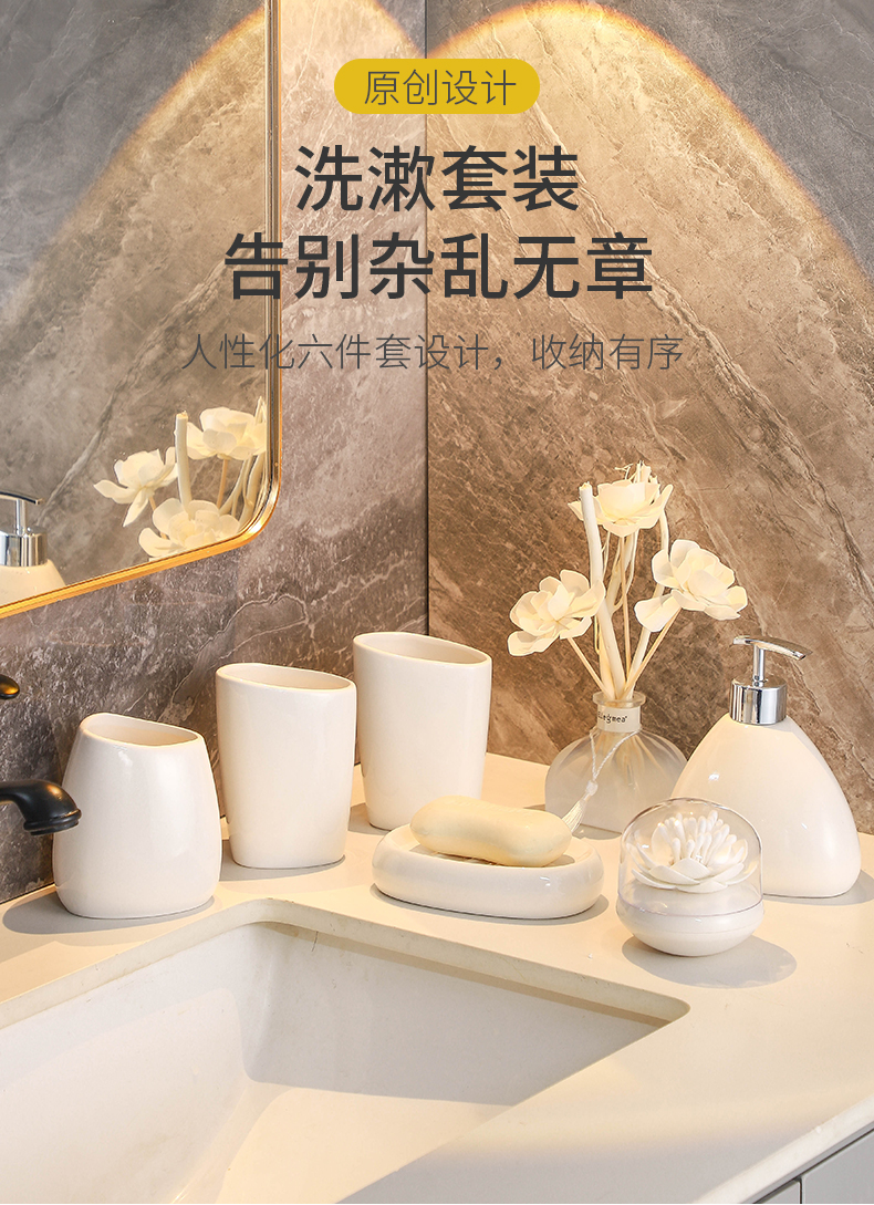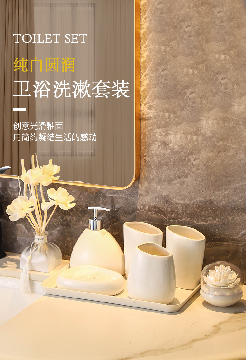 Phòng tắm bộ 5 món đồ gốm sứ đơn giản phong cách Châu Âu Bộ đồ dùng phòng tắm 4 món đồ cưới bộ cốc rửa chén