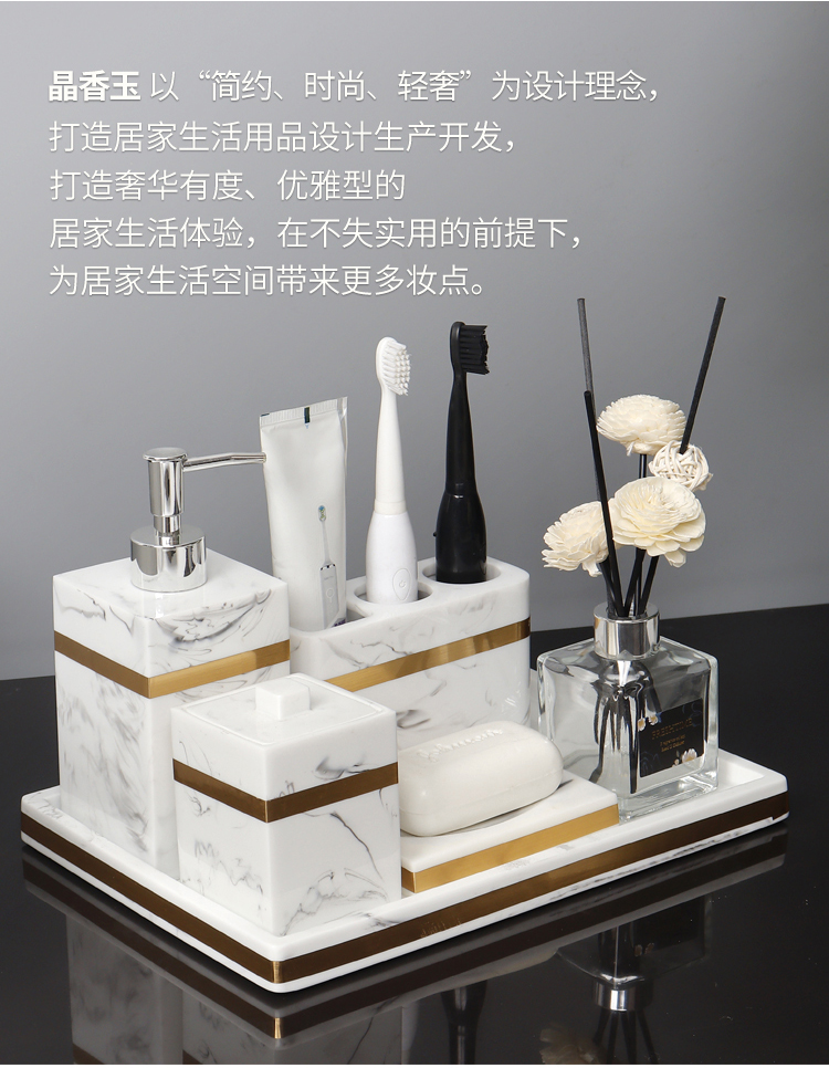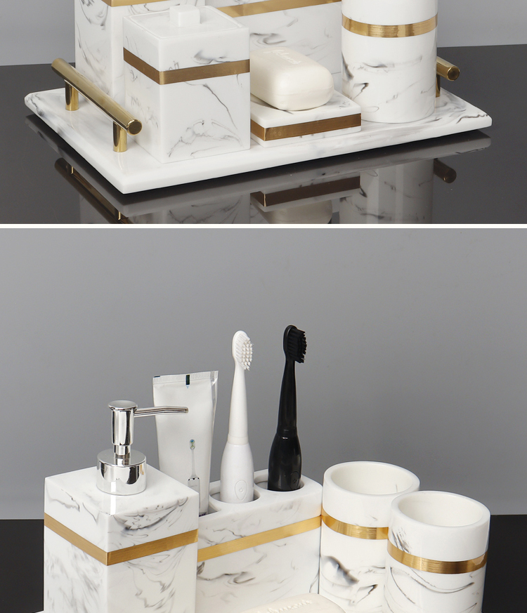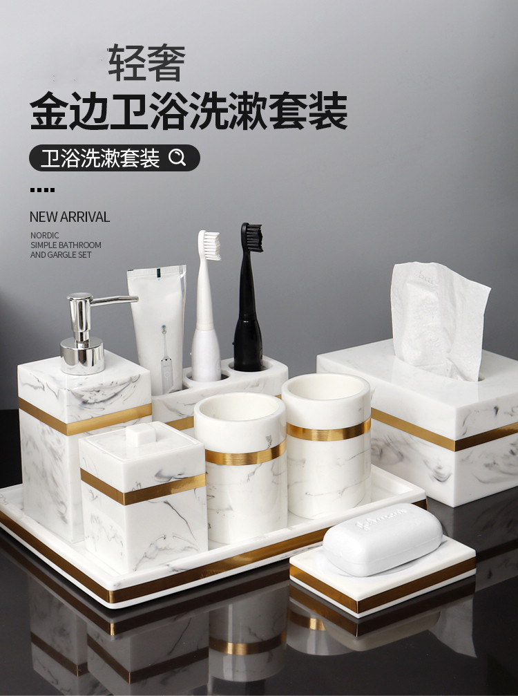 Phòng tắm cao cấp bộ 8 món trang trí phòng tắm sang trọng ánh sáng Bắc Âu cung cấp khay chậu rửa mẫu trang trí phòng