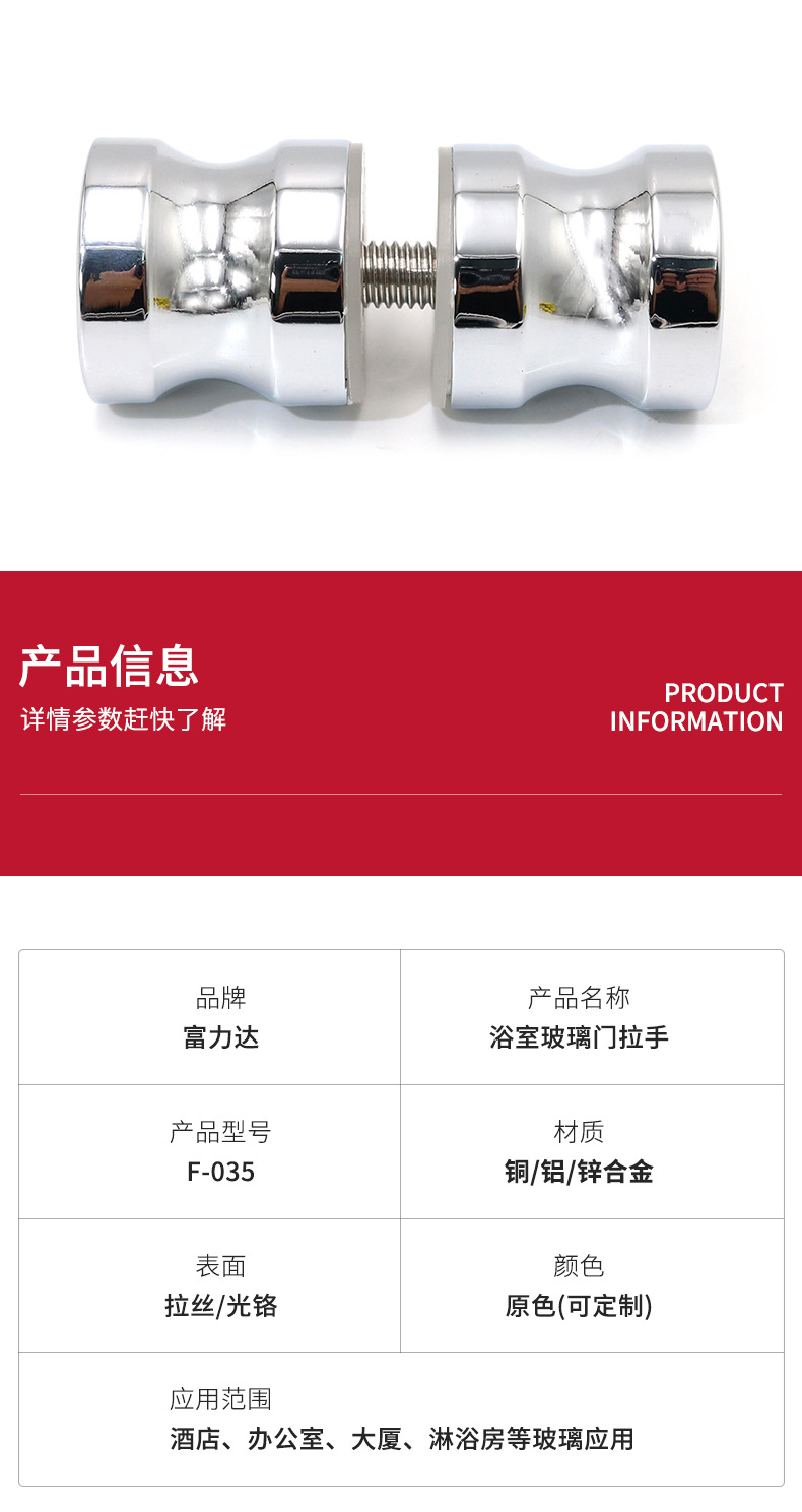Mã số: F-035 Thương hiệu: Fulida Có phải là người nộp thuế chung không: Không Màu sắc: Mạ Chrome Chất liệu: Hợp kim kẽm Kiểu máy: F-035 Xử lý bề mặt: Mạ Chrome Thông số kỹ thuật: Hợp kim kẽm Tùy chỉnh gia công: Có Cho dù đó là xuyên biên giới Xuất khẩu độc quyền Nguồn cung cấp: Không Sản phẩm sử dụng : Tay nắm cửa kính, cửa tủ Phong cách: Hiện đại, đơn giản