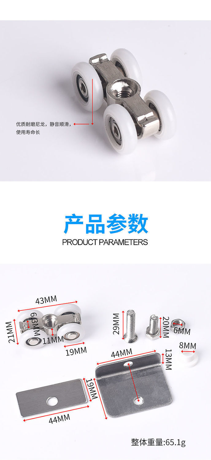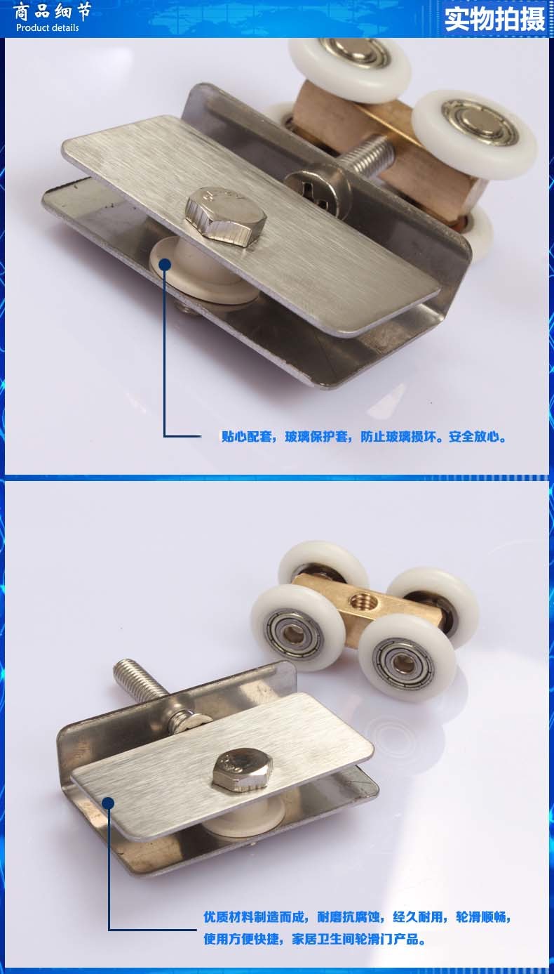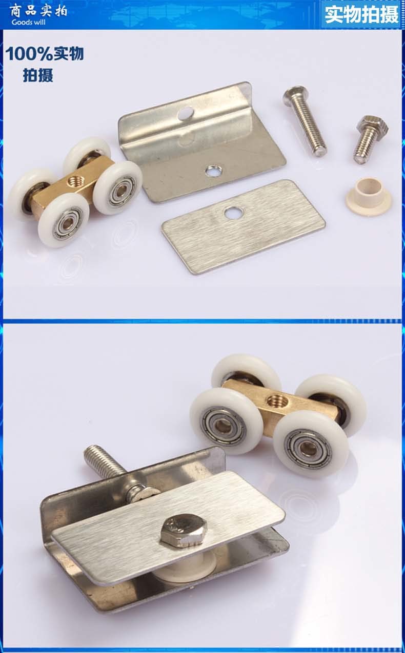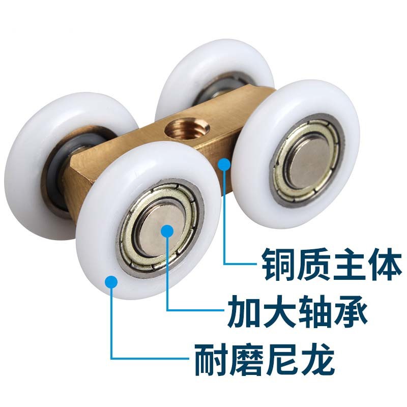Phòng tắm ròng rọc phòng tắm nhà vệ sinh kính cửa trượt nhỏ bánh xe treo đồng bốn bánh kính cửa phụ kiện cửa trượt con lăn