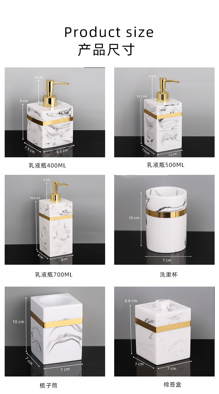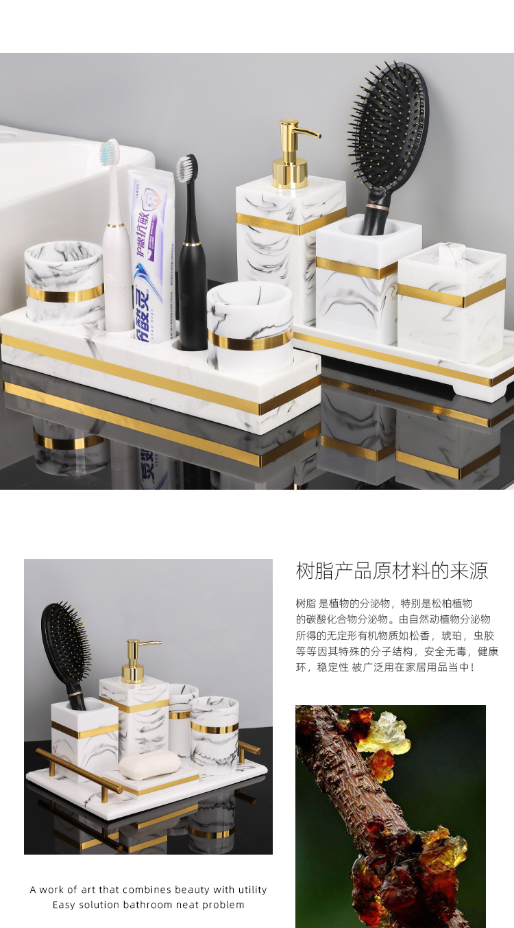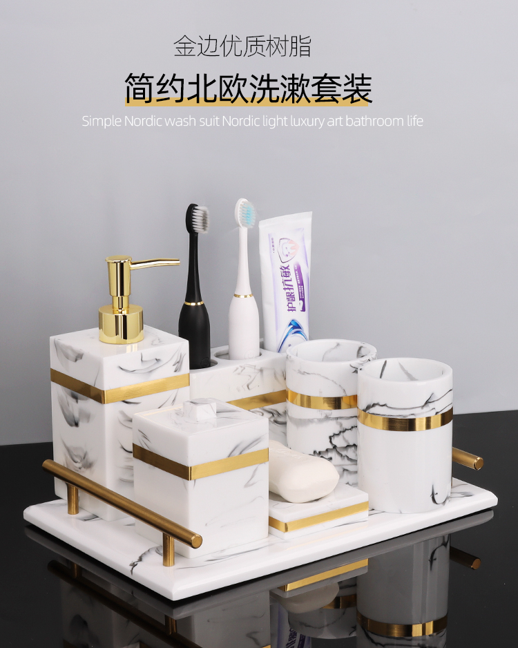 Phòng tắm sang trọng nhẹ phòng tắm 5 món đồ dùng phòng tắm bộ rửa bộ bàn chải đánh răng cốc đựng nước rửa tay khay đựng chai phong cách Châu Âu