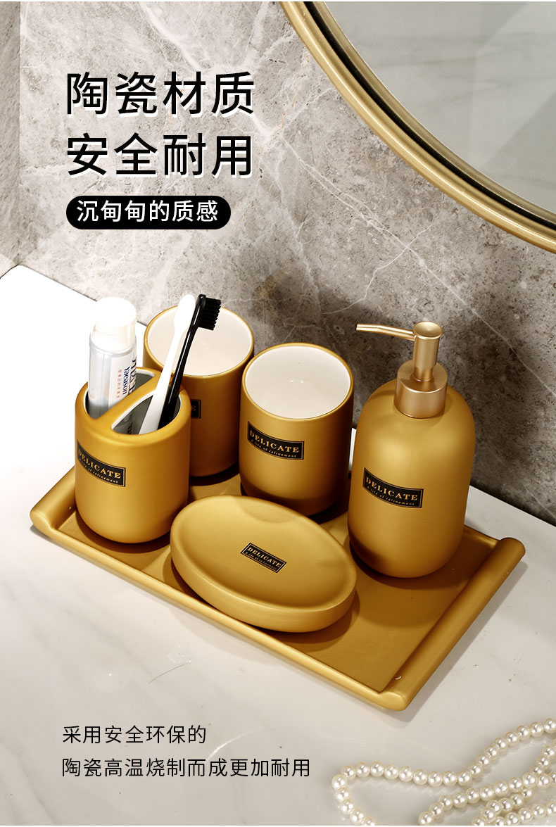 Phòng tắm sang trọng nhẹ phòng tắm năm mảnh đồ dùng phòng tắm rửa bộ cốc nước súc miệng cốc bàn chải đánh răng cốc rửa tay chai kem dưỡng da