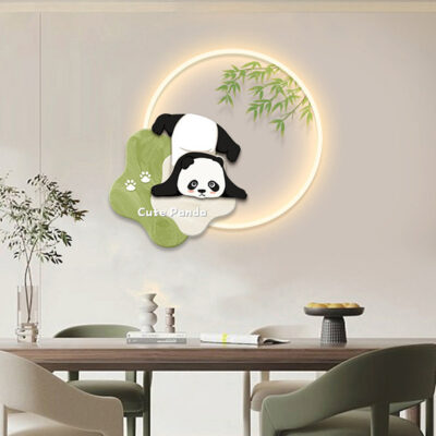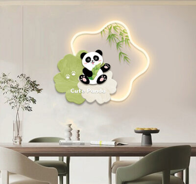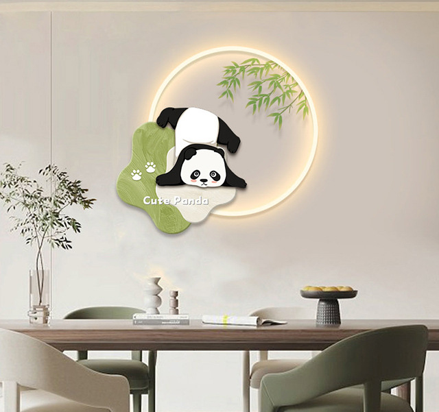 Phòng trẻ em gấu trúc khổng lồ Đồng hồ treo tranh hiên nhà hoạt hình Tranh đèn LED phong cách Bắc Âu Tranh trang trí đèn cao cấp bức tranh sang trọng
