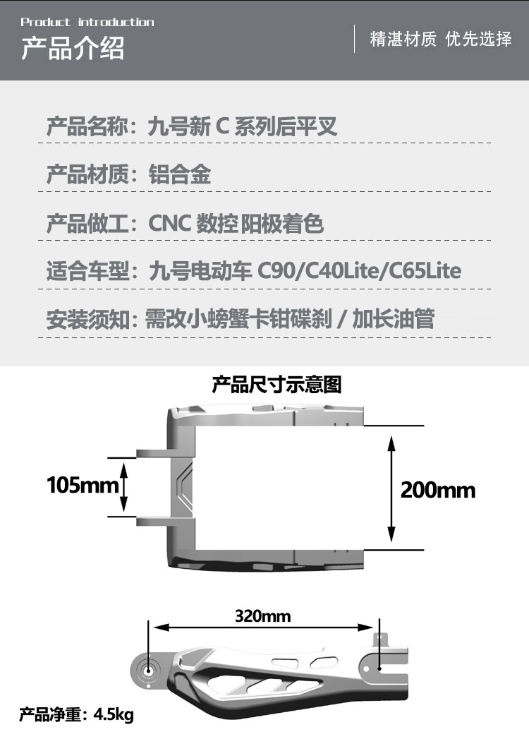Phù hợp cho xe điện số 9 C series phuộc sau phẳng C40 C65lite phụ kiện sửa đổi số 9 C90 phuộc phẳng CNC