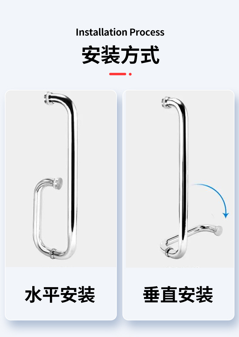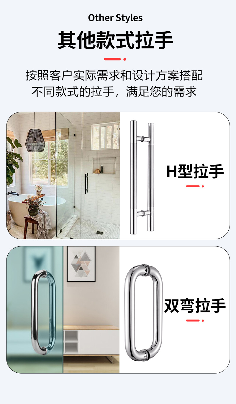 Phụ kiện phần cứng kỹ thuật khách sạn chống gỉ mạnh phân vùng phòng tắm Châu Âu dịch cửa kính tay cầm ngang và dọc bán buôn