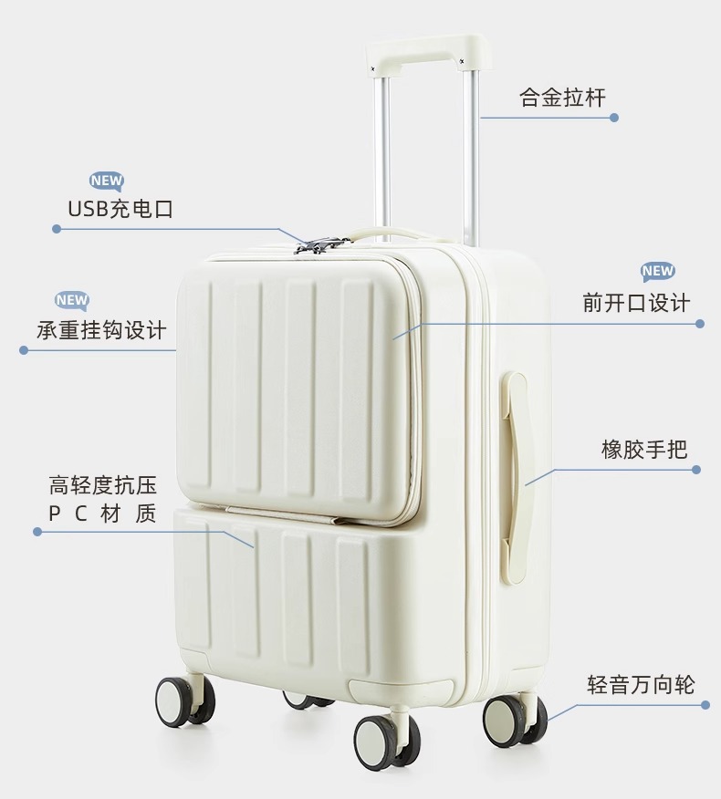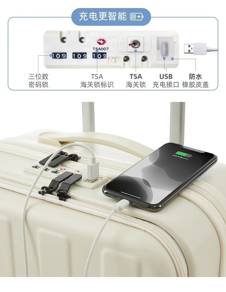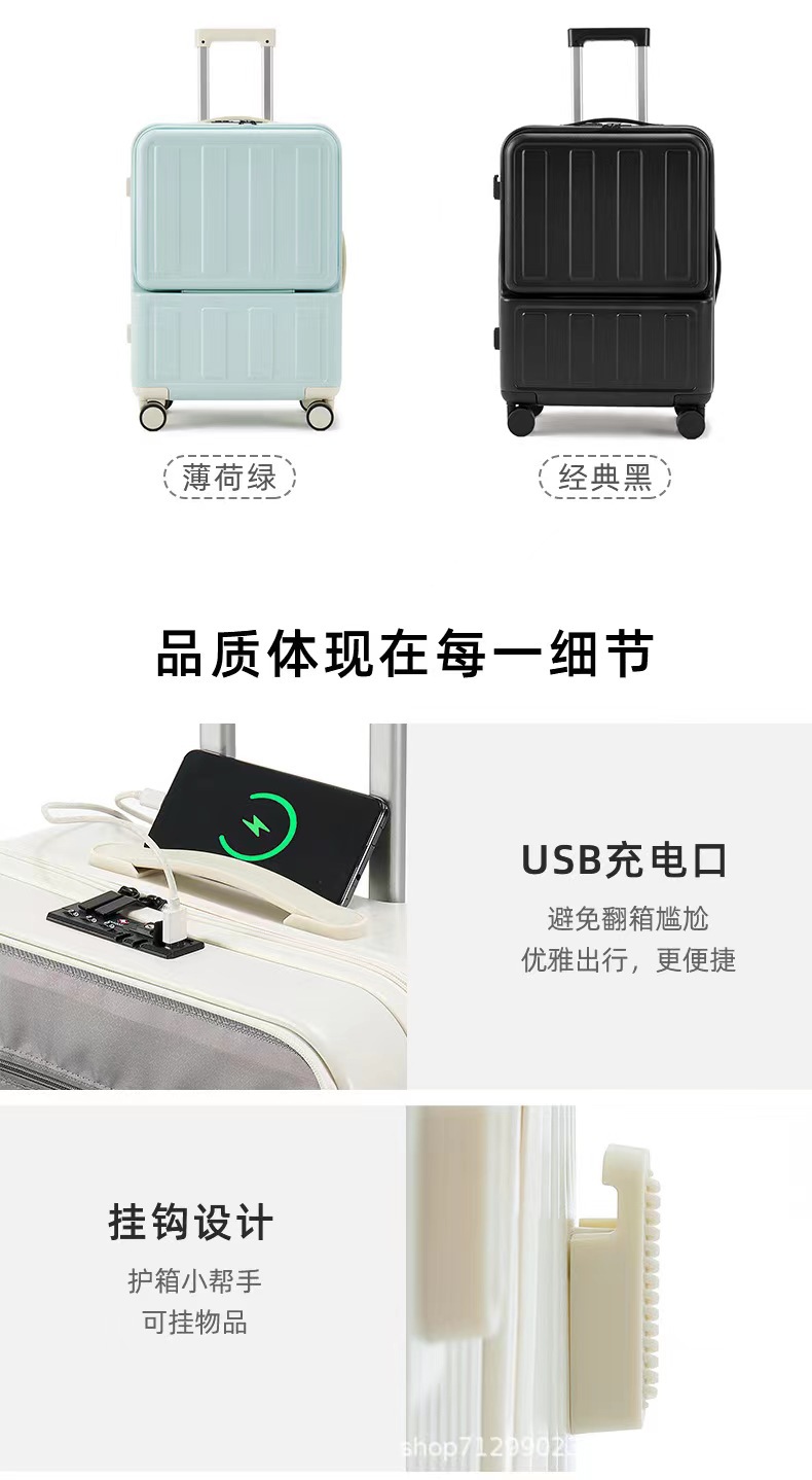 Phụ nữ mới 20-inch hành lý im lặng đa năng bánh xe đa năng mở USB loại lớn vali xe đẩy
