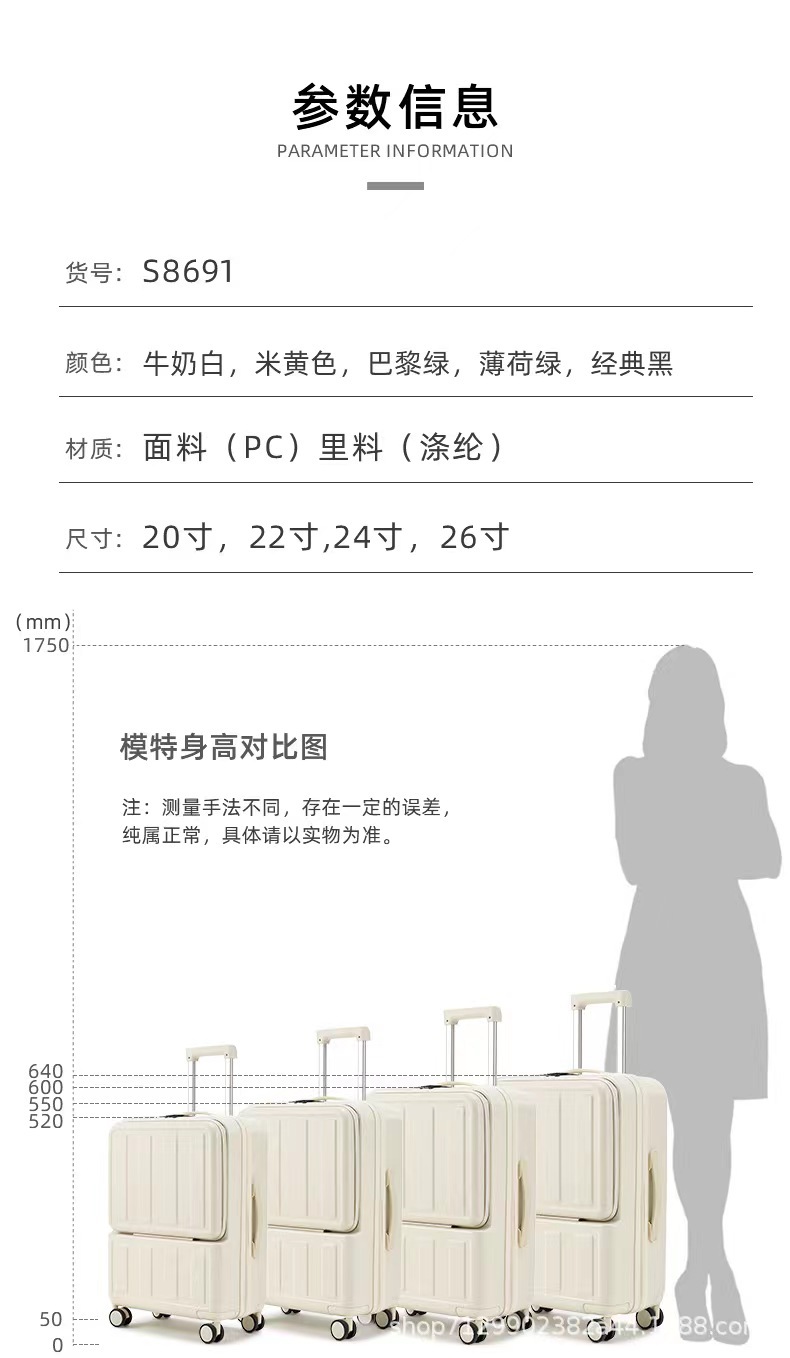 Hoa văn: Màu trơn Kết cấu lớp lót: Polyester Có lớp giãn nở hay không: Không Mã sản phẩm: Mở nửa chừng Senyilai Thương hiệu: Không Cảnh áp dụng: Du lịch giải trí Màu sắc: Trắng sữa/Đen Athens/Xanh bạc hà/Vàng nhạt/Xanh Paris/Paris Màu xanh lá cây Kiểu con lăn : Bánh xe phổ thông có thương hiệu riêng được ủy quyền: Không Giới tính áp dụng: Unisex / cả nam và nữ Trọng lượng: 3,2kg Năm niêm yết Mùa: Mùa hè 2023 Chức năng: Giao diện USB / tách khô và ướt / tách khô và ướt Chất liệu: ABS + PC Kích thước vật liệu: 20 inch/22 inch/24 inch/26 inch/26 inch Phương thức mở: dây kéo Loại khóa: khóa kết hợp TSA Yếu tố phổ biến: xích