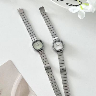 Phụ nữ phù hợp với khí chất đồng hồ thời trang đĩa xanh Dòng ins gió tre vuông đồng hồ ánh sáng sang trọng thiết kế thích hợp