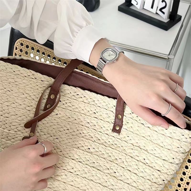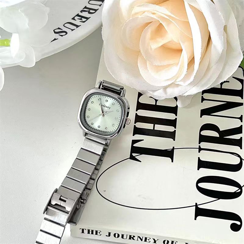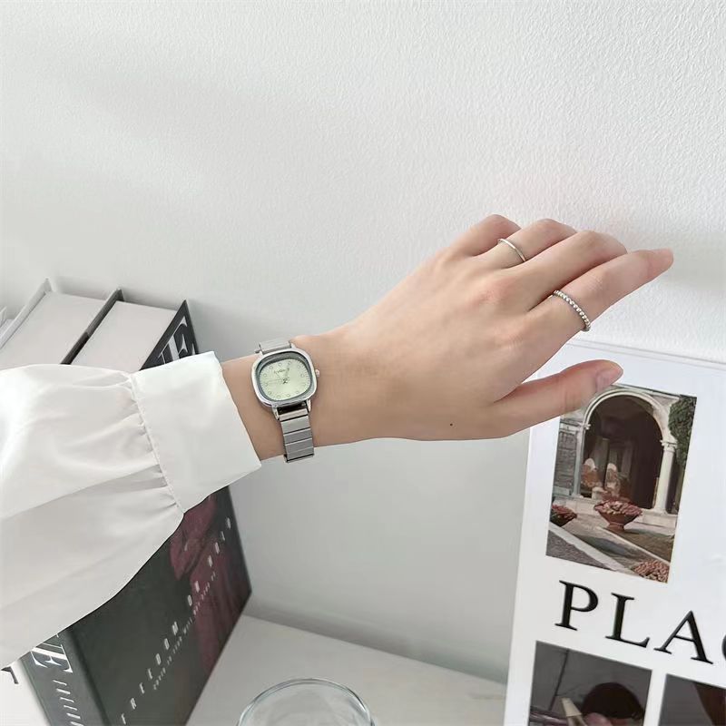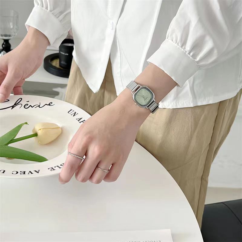 Phụ nữ phù hợp với khí chất đồng hồ thời trang đĩa xanh Dòng ins gió tre vuông đồng hồ ánh sáng sang trọng thiết kế thích hợp