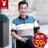 Pierre Cardan Mulberry Silk Áo phông ngắn tay Màu sắc Kinh doanh Ice Silk Áo sơ mi nam trung niên có ve áo Bố mỏng