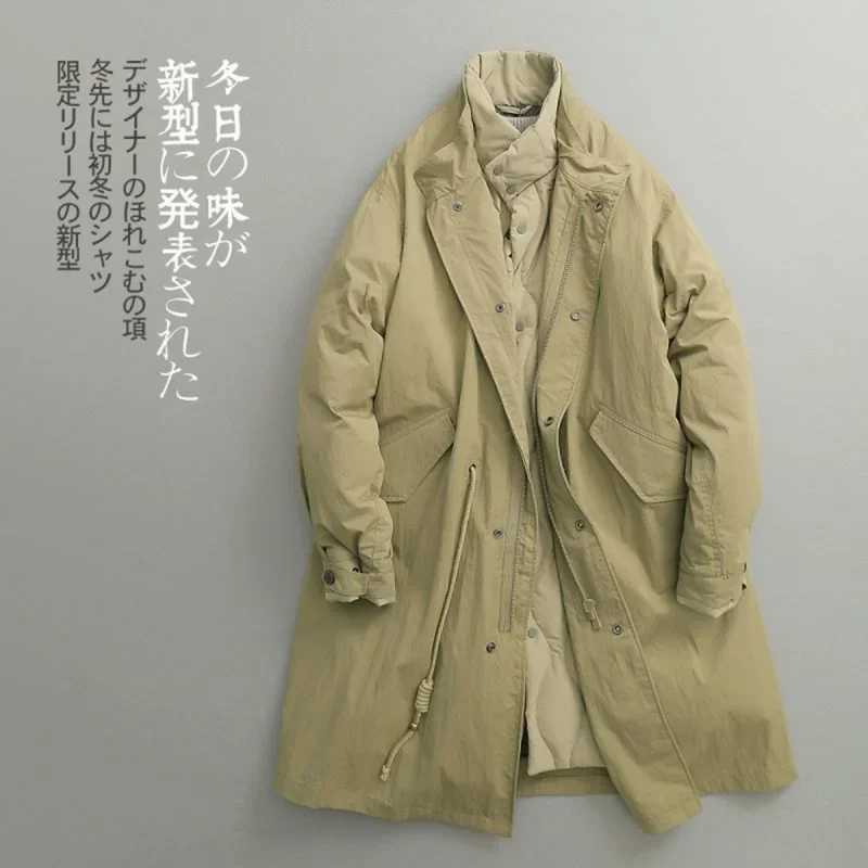 New Winter Japanese Retro Long Jacket Army Green Coat Plus Size Jacket Men Long Parka Coat Autumn Puffer Overcoat Jacket Men _x000D_