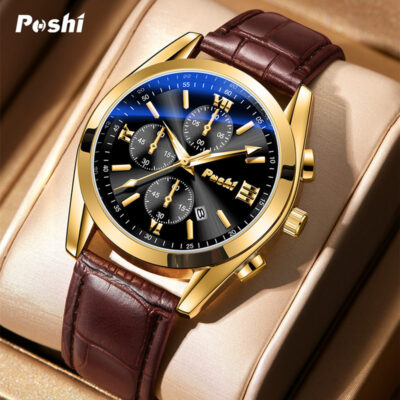 Đồng hồ POSHI Thương hiệu đồng hồ nam thời trang doanh nhân cao cấp chống thấm nước. Đồng hồ nam đẹp chống nước POSHI dây da mềm mại phù hợp với các quý ông lịch lãm mẫu mới 2023.