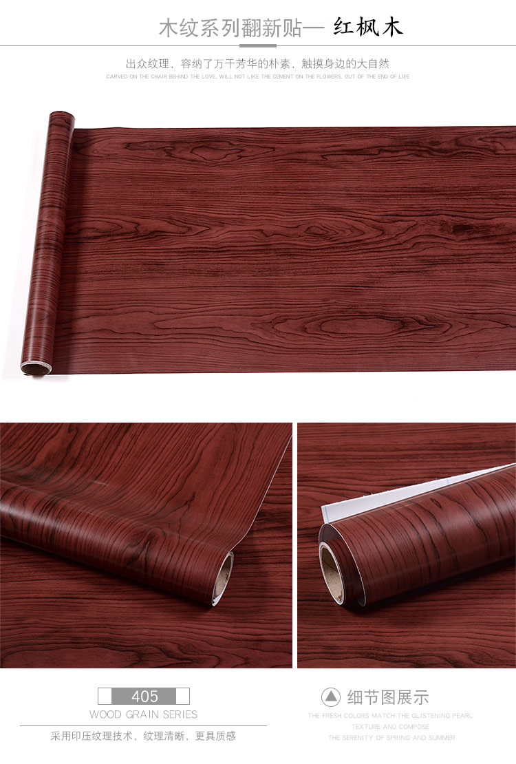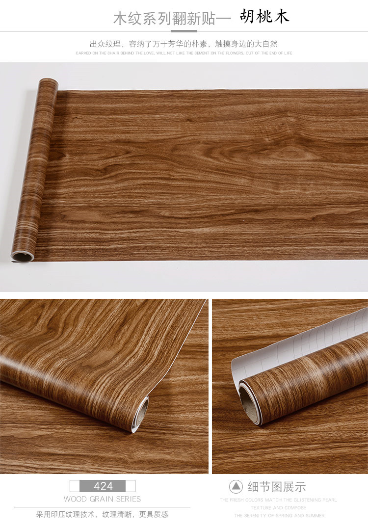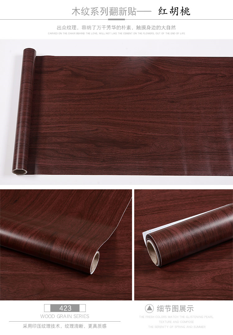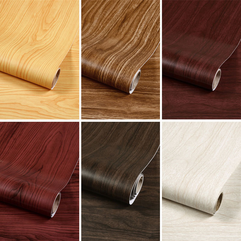 PVC dày hạt gỗ dán tủ đồ nội thất tủ quần áo phòng khách máy tính để bàn đổi mới dán tường phẳng dán giấy dán tường tự dính đồng màu
