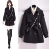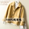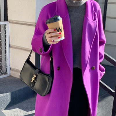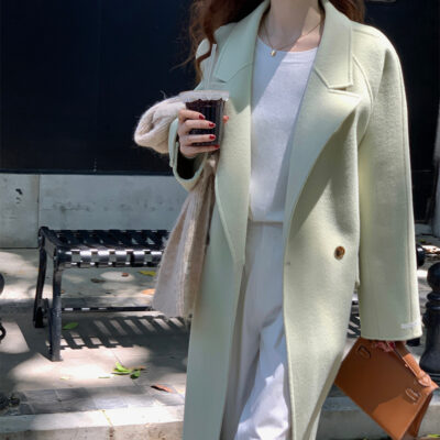 Q474 Áo khoác len 2 mặt khâu tay màu trơn cho nữ mùa thu đông mới kiểu Hàn Quốc thiết kế áo khoác tay cong