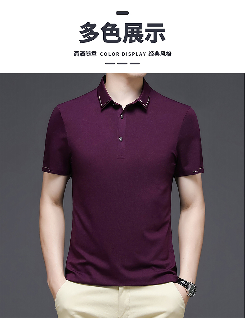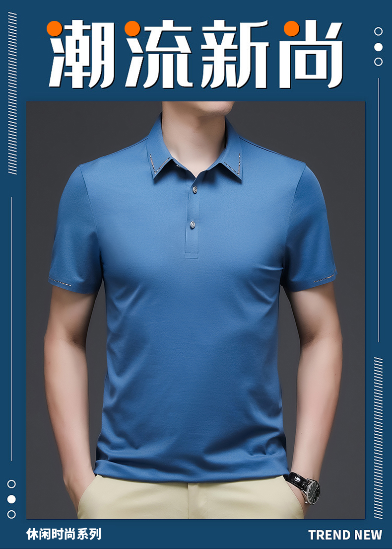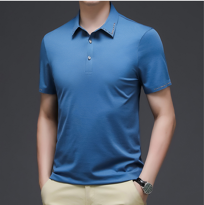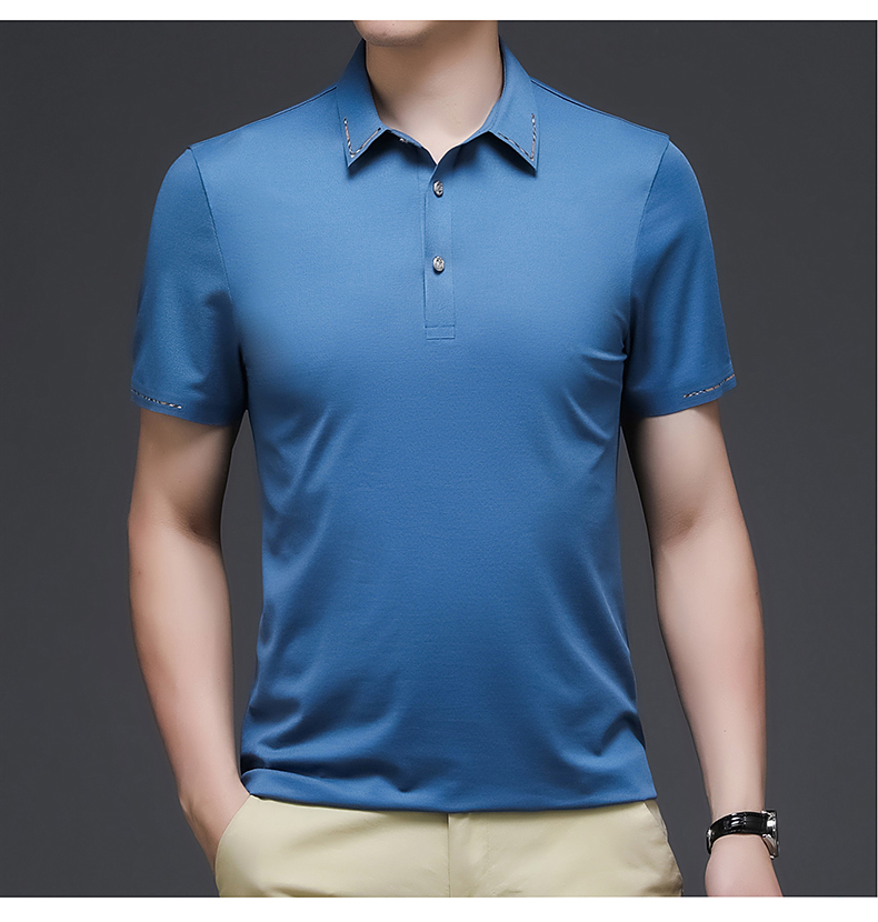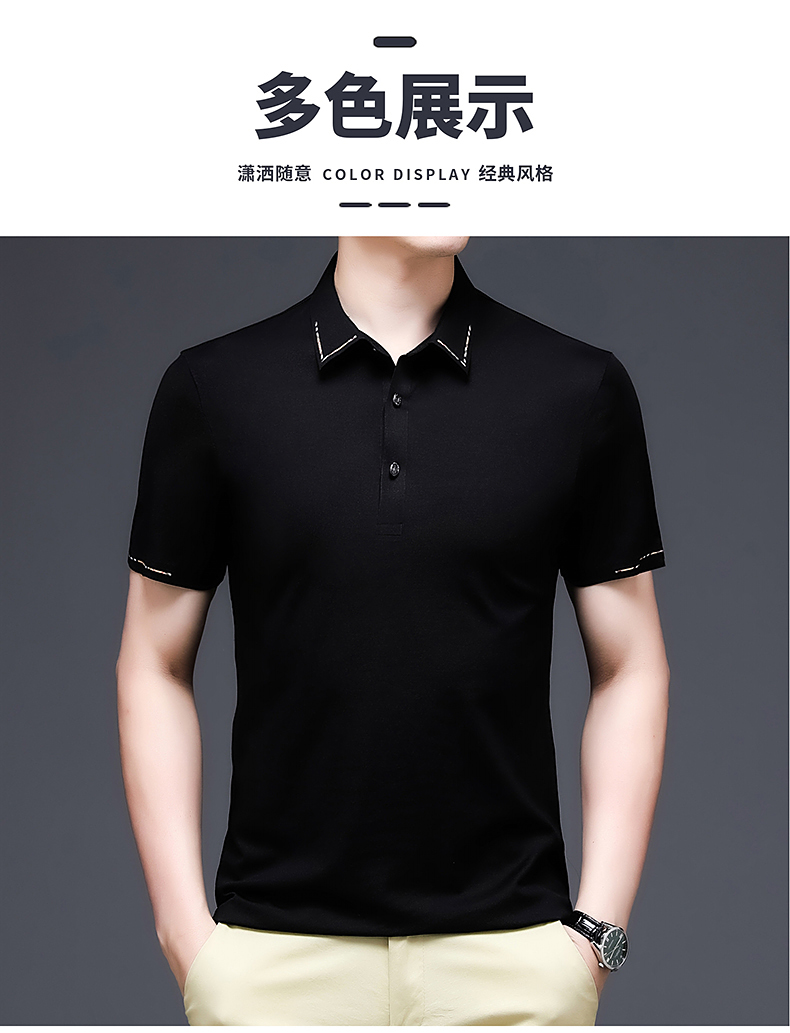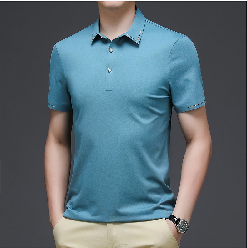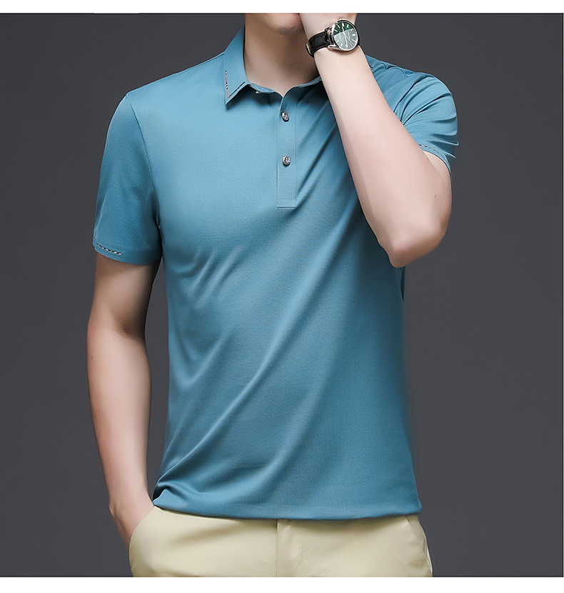 Qi Armania lụa dâu tằm áo thun nam ngắn tay cao cấp của nam giới 2022 mùa hè mới áo thun nam trung niên