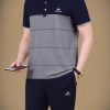 Qi thương hiệu nam giới lụa dâu tằm ngắn tay áo phông nam trung niên sọc lụa kinh doanh giản dị áo phông bố ve áo nửa tay