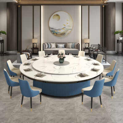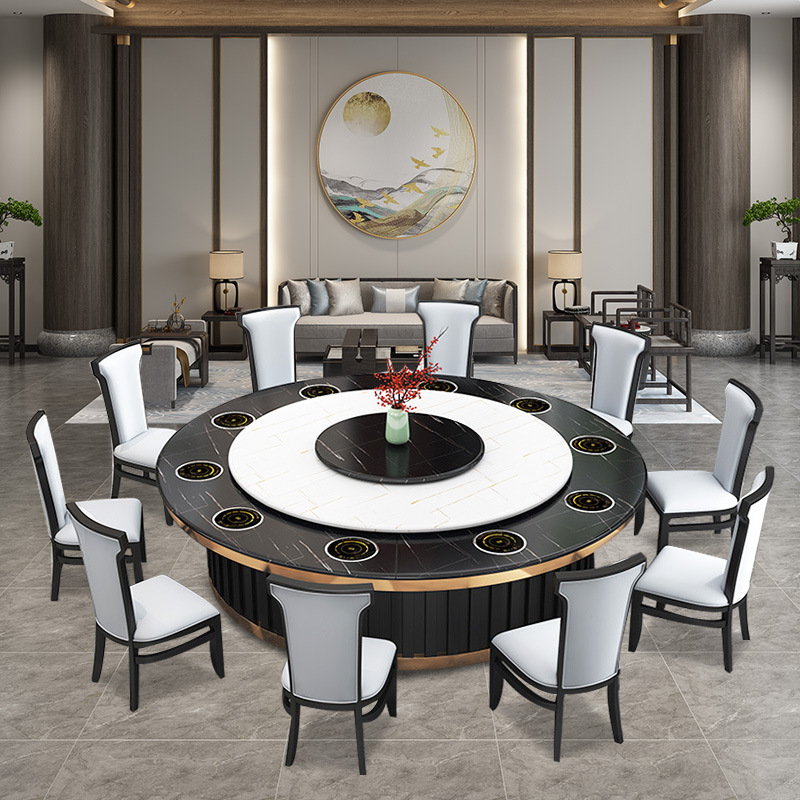 Qiao Jiaren khách sạn bàn ăn xoay tự động bàn tròn lớn câu lạc bộ đá cẩm thạch 20 người 15 người tấm đá vô hình tự động bàn lẩu