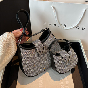 今年流行小众ins夏秋新款斜挎辣妹流浪包镶满女王水晶钻腋下女包 |