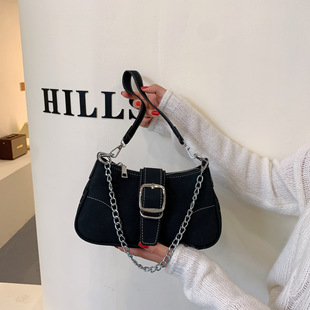 新款夏秋季高级质感女士复古小包包爆款牛仔磨砂腋下包单肩链条包 |