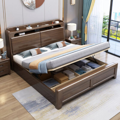 Quả óc chó Trung Quốc hiện đại đơn giản giường đôi nhẹ nhàng sang trọng 1.8 giường lớn 1.5m phòng ngủ chính lưu trữ hộp cao giường gỗ nguyên khối